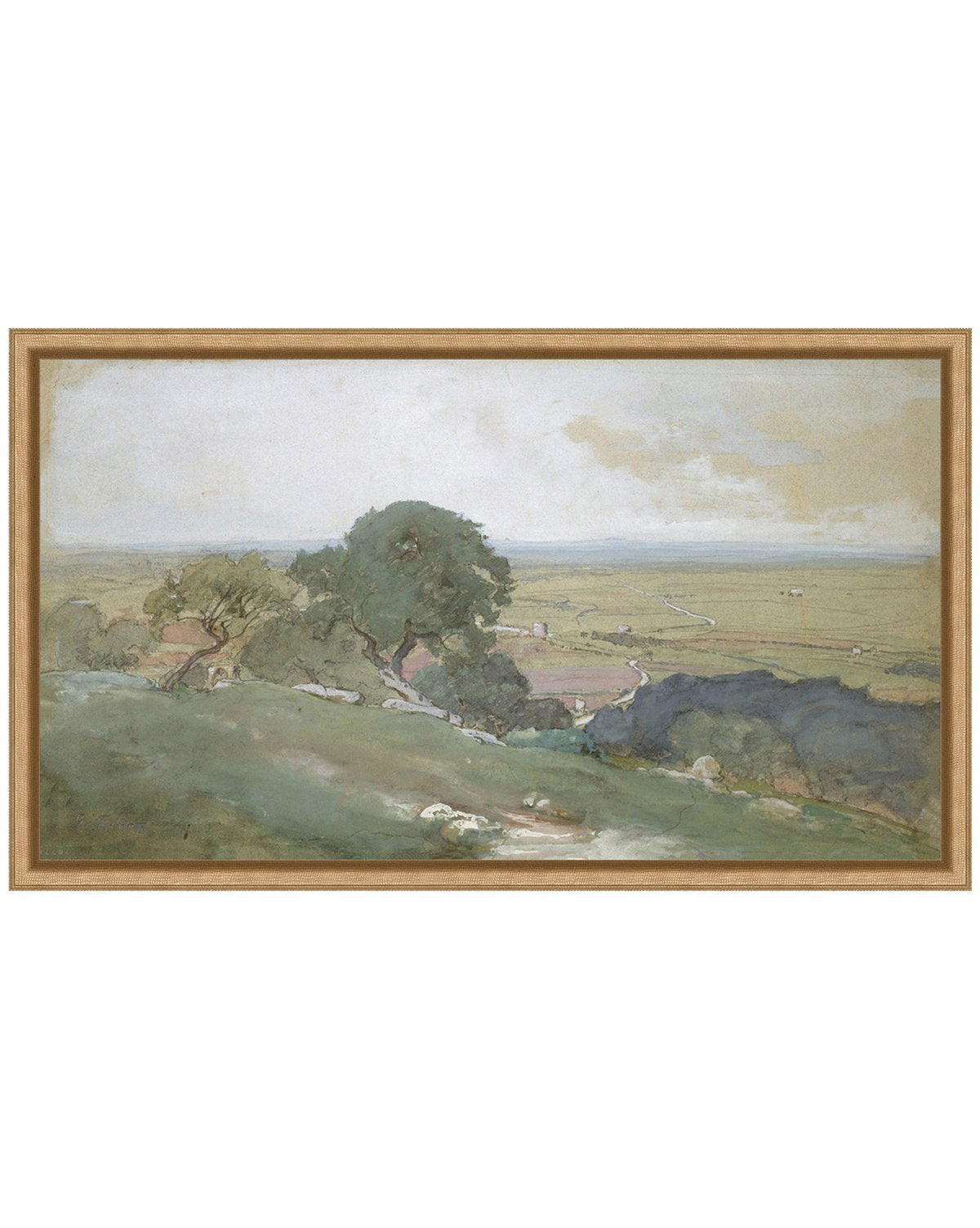 This moving landscape scene drew us in with its slightly muted, yet rich earth tones. Its small scale boasts vintage charm and is perfect for hanging on a gallery wall, or leaned against the wall on a side table or kitchen counter.