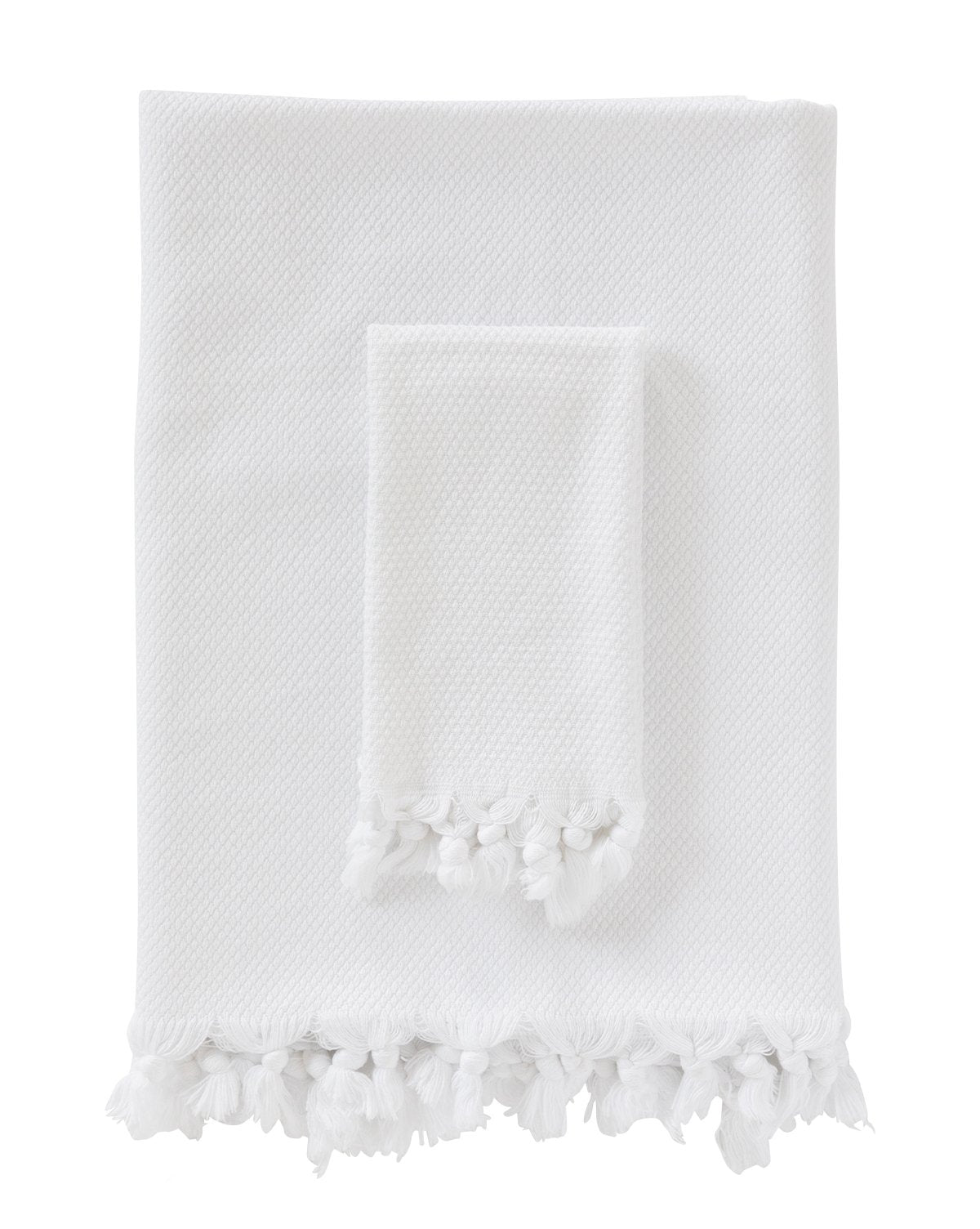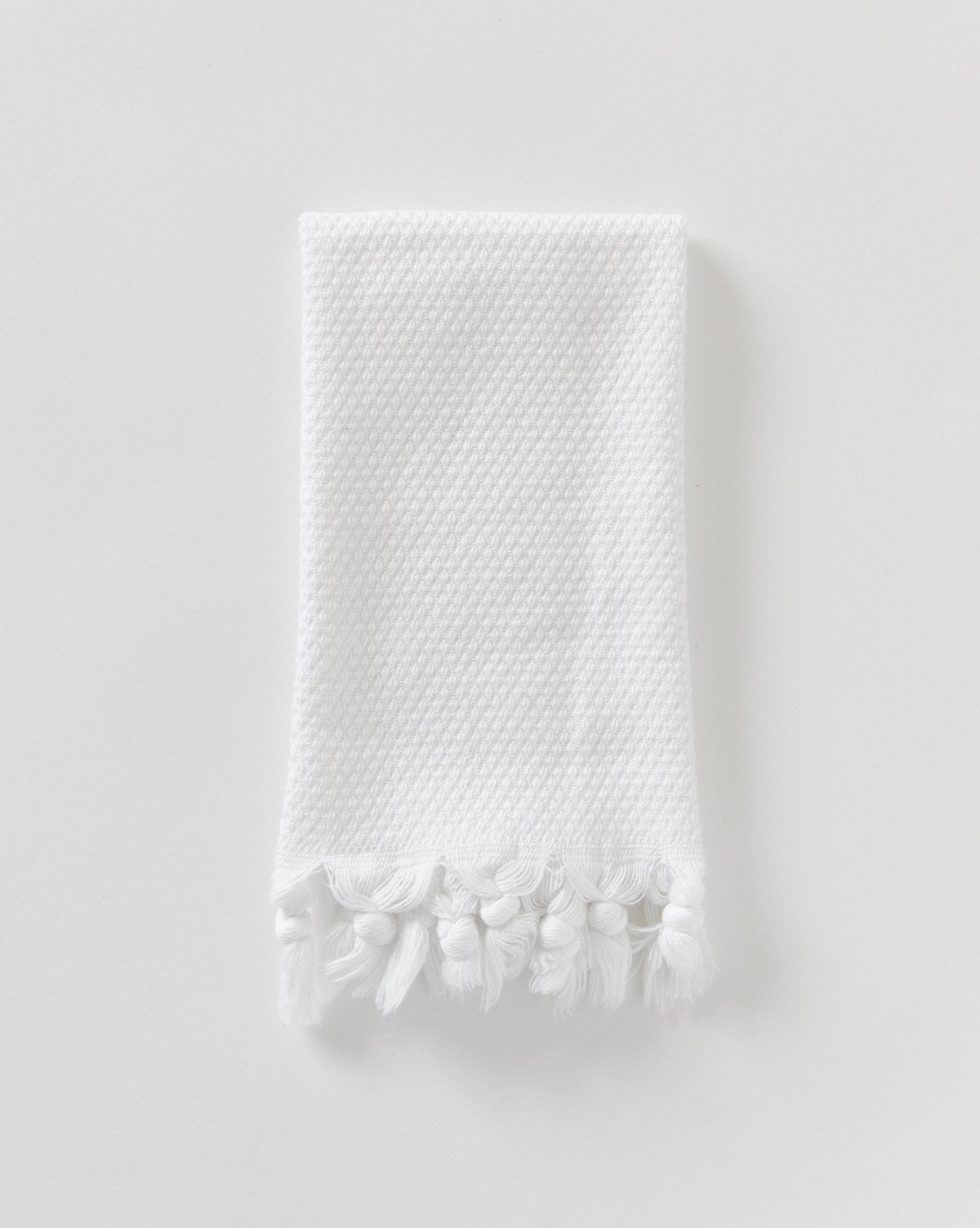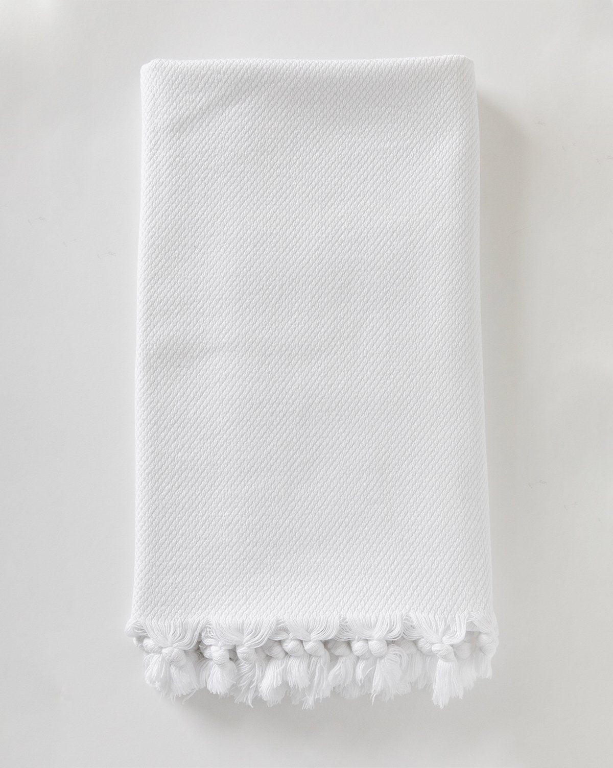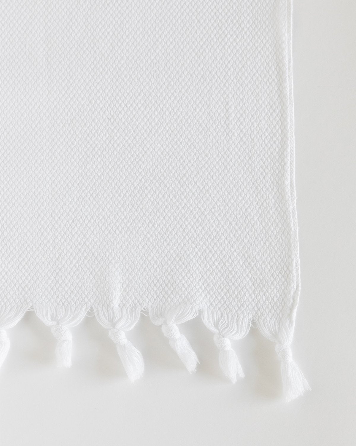 Our Baklava Bath Collection is as beautiful as it is functional! In a crisp white hue, this collection is crafted from 100% cotton for high absorption. Its fringed edge adds a touch of whimsy, while its overall look is sophisticated and collected.