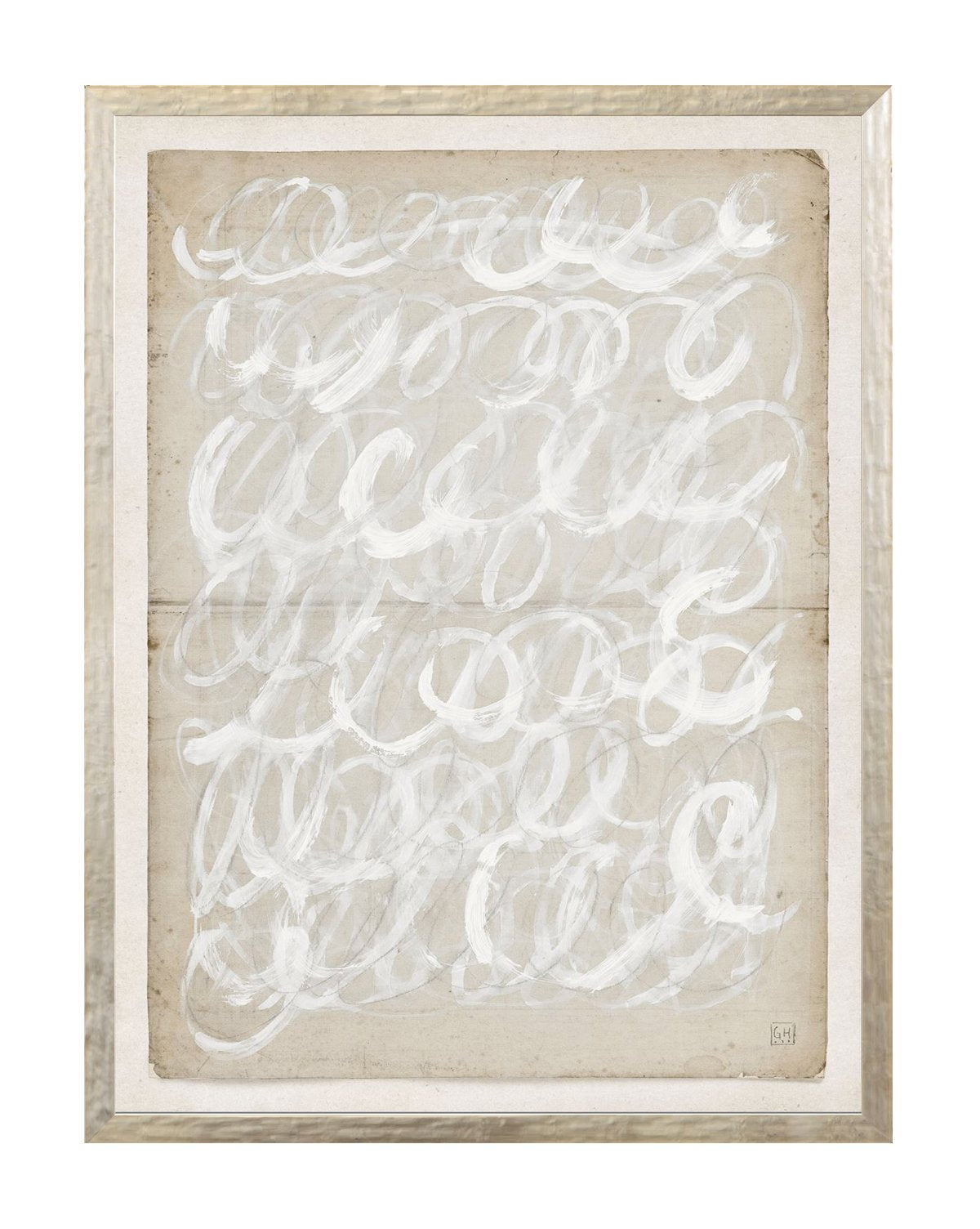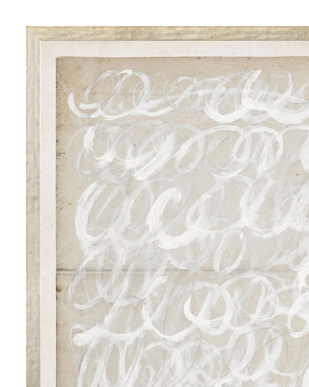 Beige Abstract uses a calming tone-on-tone palette to play with intriguing shapes and energetic strokes of white paint and pencil. Both this and its sister piece, are rendered on restoration paper for added depth and interest.