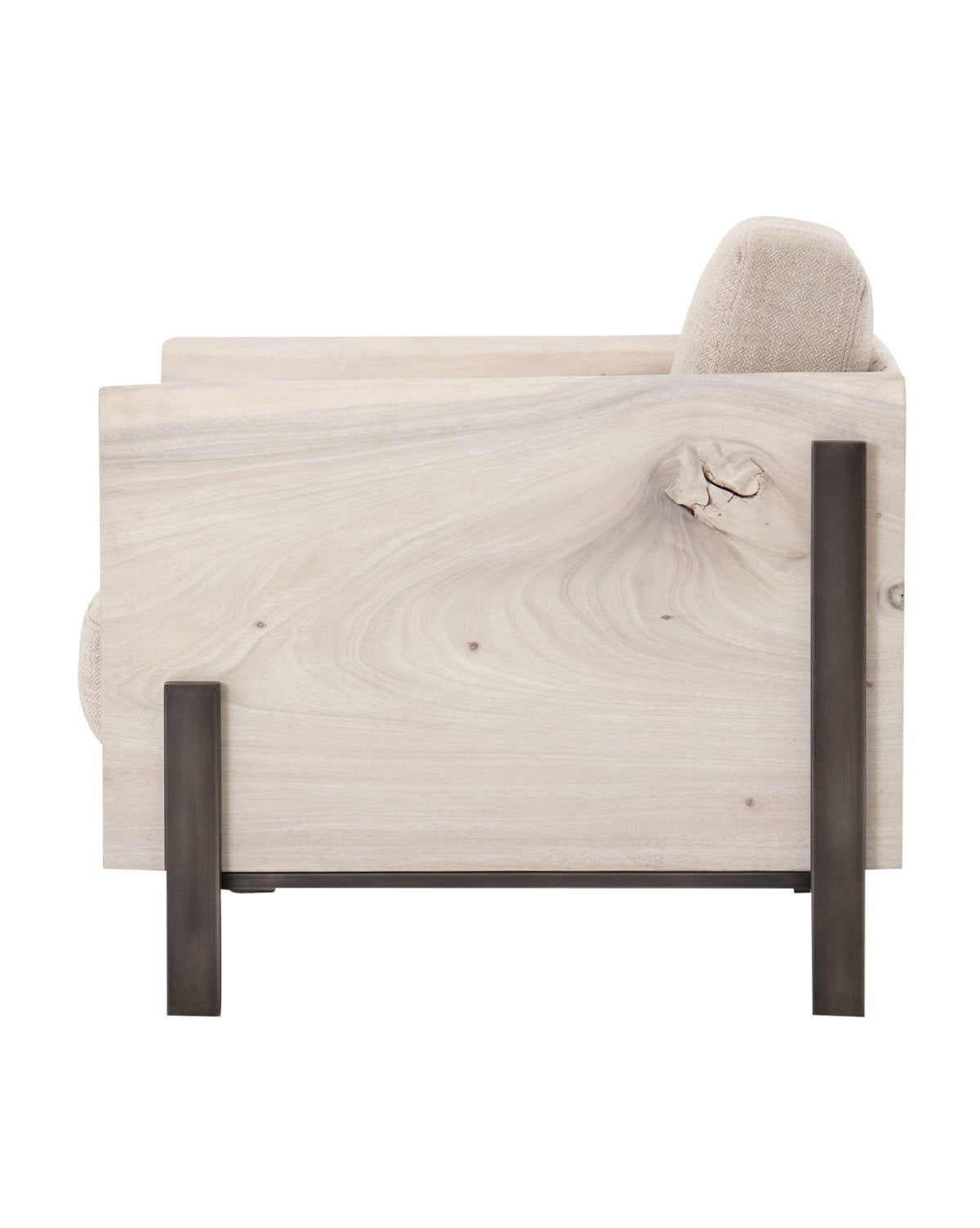Minimalistic by design, our Blaire Chair features modern style and an organically textured mix of materials. With a frame crafted from whitewashed guanacaste, supported by exposed, oxidized iron legs, this chair always garners a double take.