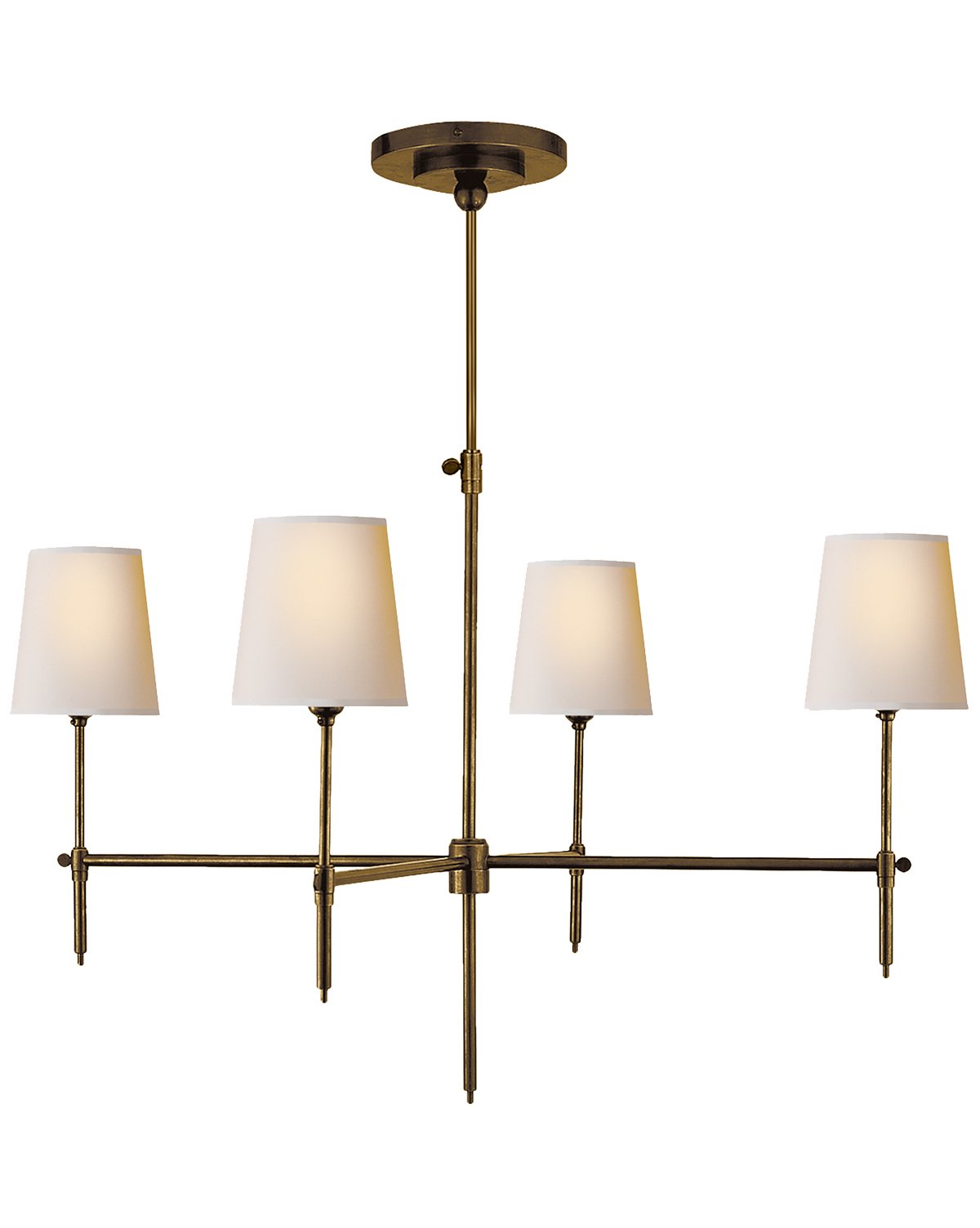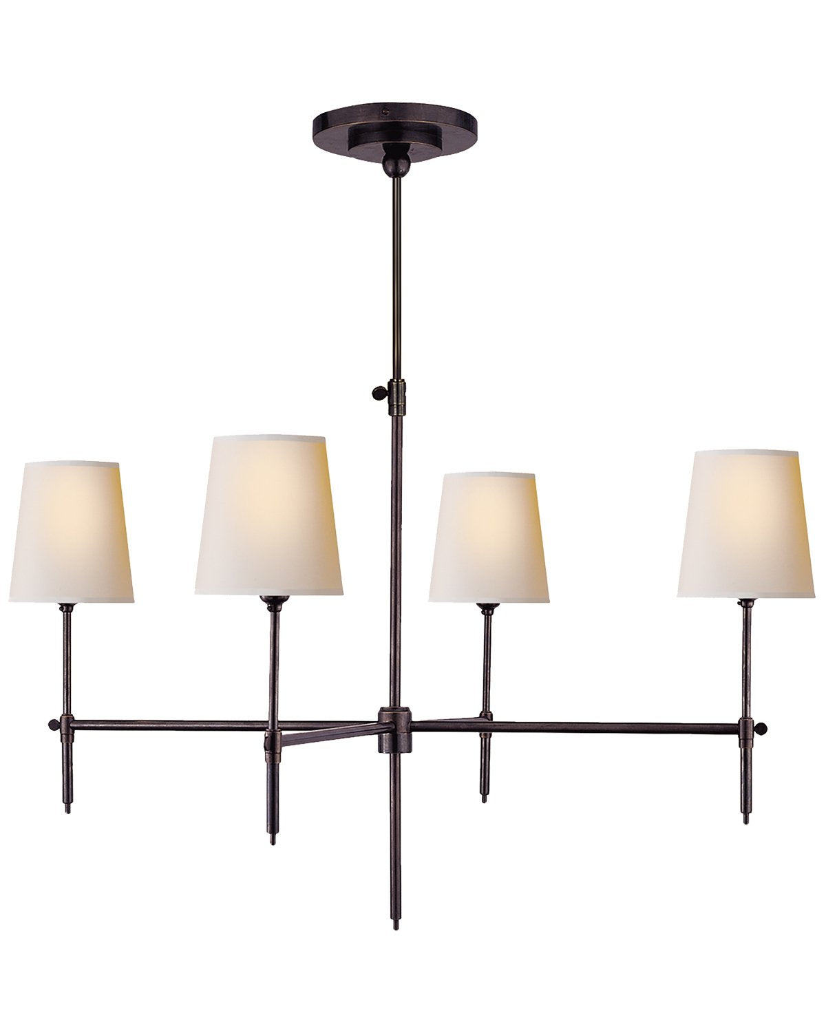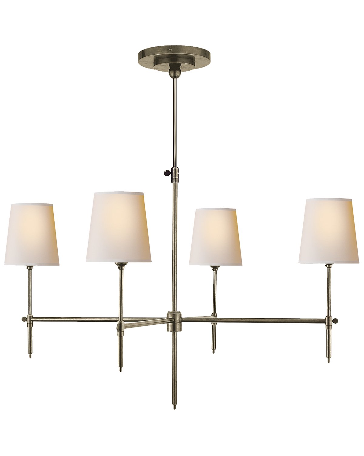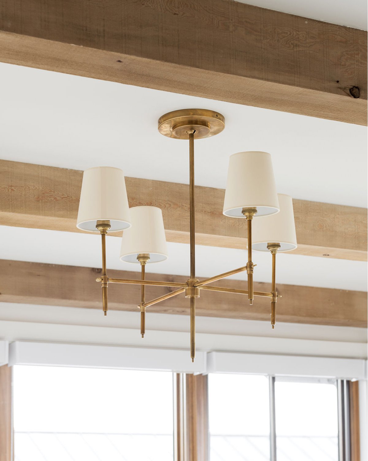We love how the slim arms carry the four shades on this unique lighting feature. Its easygoing elegance and clean design are sure to suit your home for years to come.
