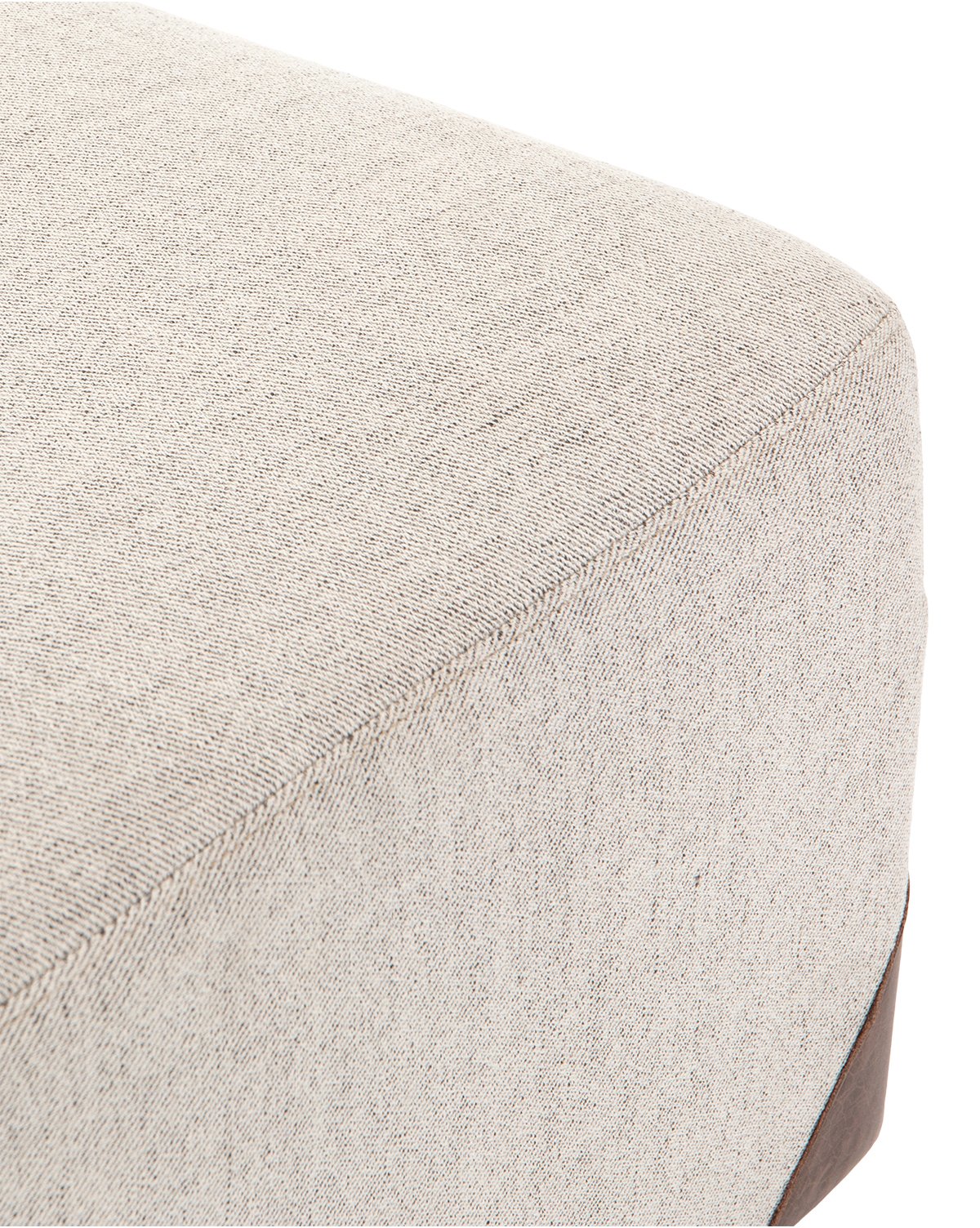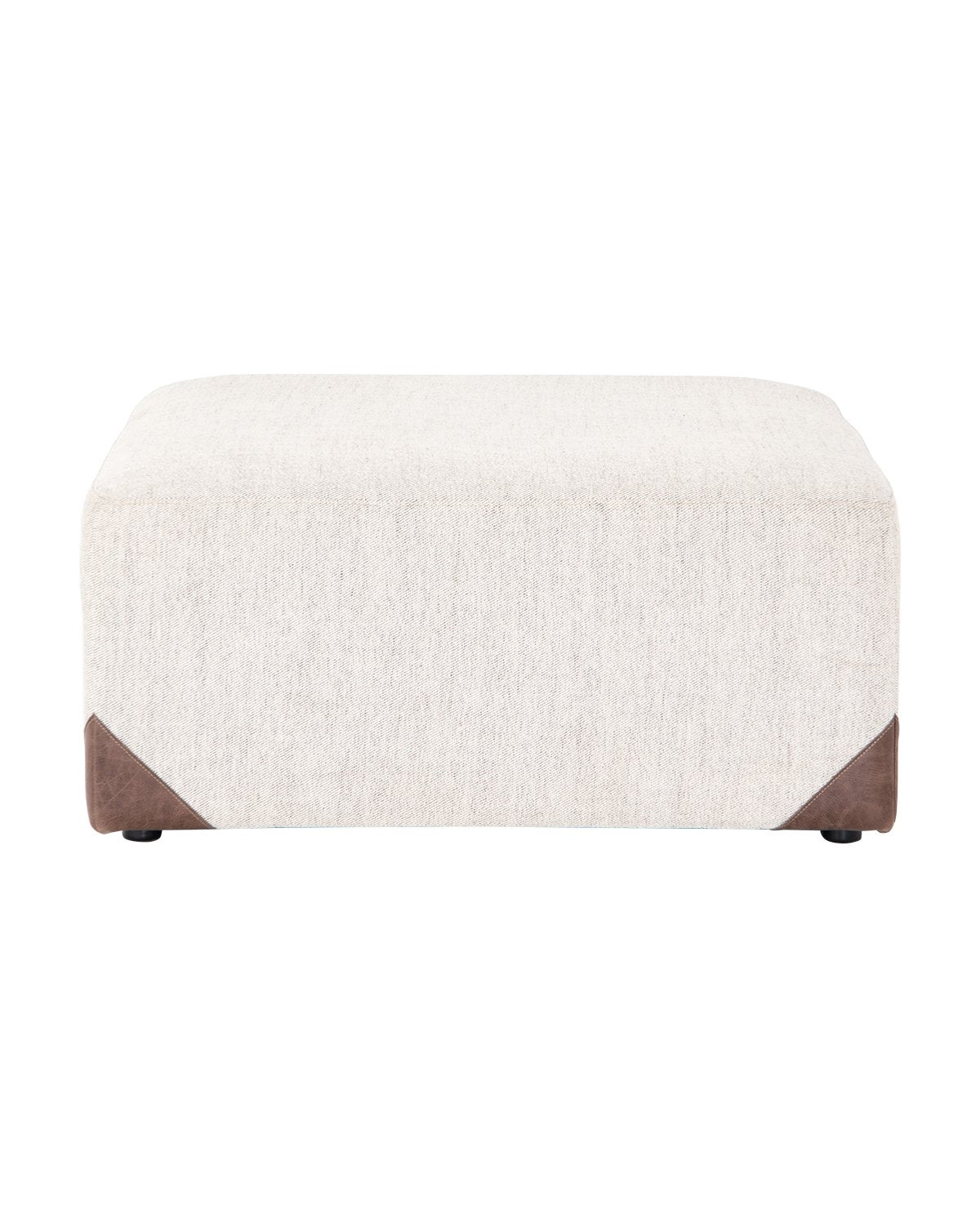 Square and straightforward, the sophisticated shape of our Calton Ottoman enhances your living room with a refined style. From the textural cream fabric to the leather-wrapped corners, this ottoman lends contrast while blending seamlessly in your space.