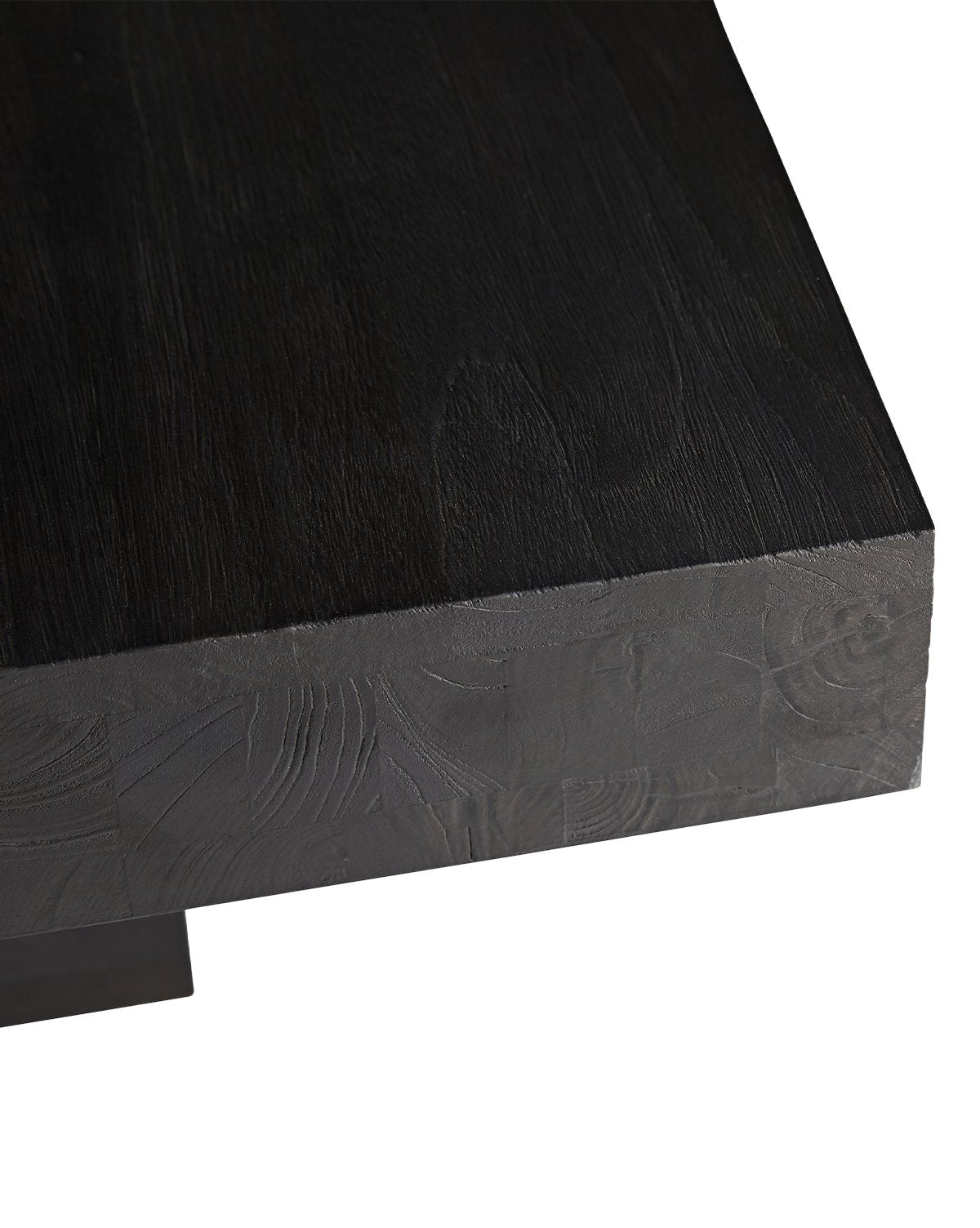 Crafted with keen attention to detail, the wood that forms the Campbell Coffee Table is first sandblasted for a charred wood finish, then brushed for texture and finished with a slight gloss. Styled with your favorite trays or vases, its deep black color, and large stature creates the perfect base for layering in your living room.