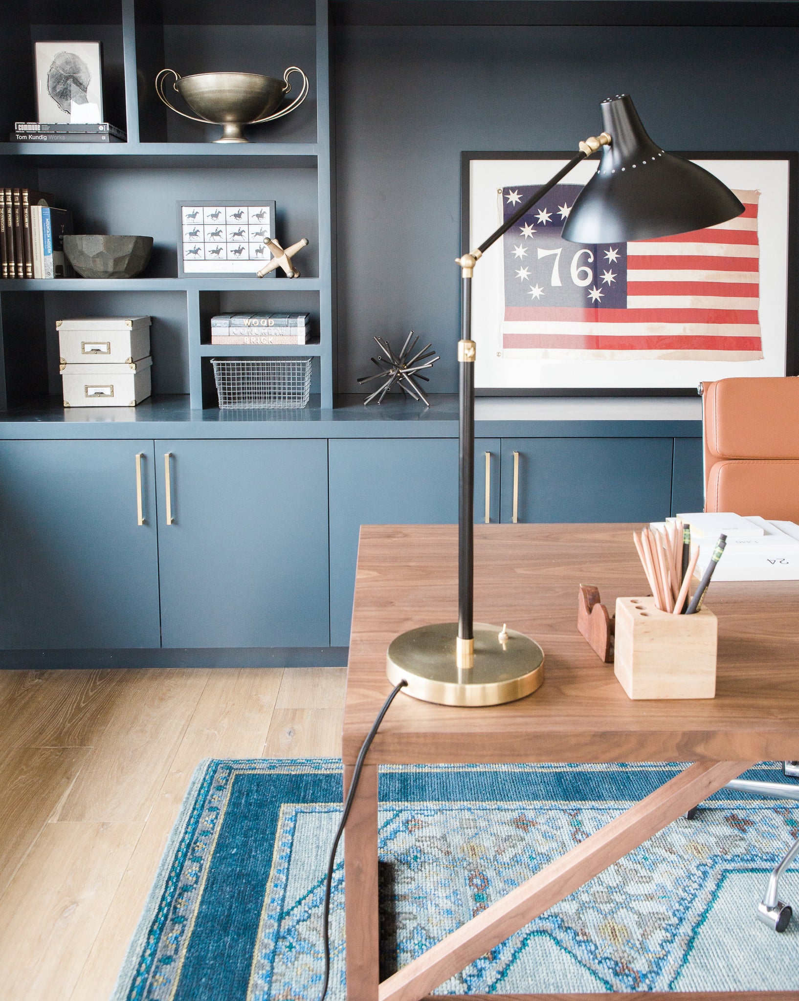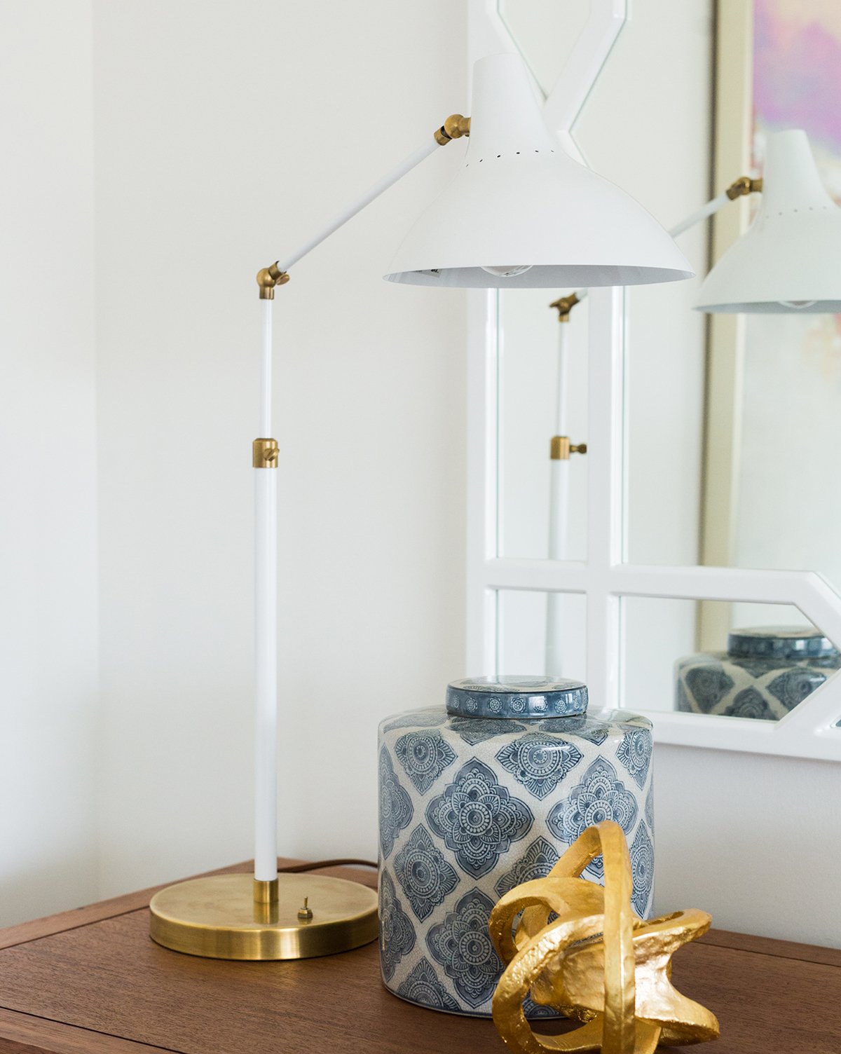 Not your average table desk lamp! This functional fixture is a Studio McGee favorite! From top to bottom, it's sleek and modern in either finish. Its unique shade can point light anywhere you need, and that brass base is an element we can look at all day!
