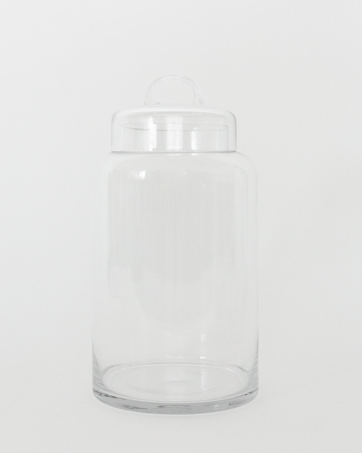 Our Classic Glass Canister provides the perfect home for bathroom or kitchen essentials. A fitted lid extends over its basic base for added form and interest to its sleek glass frame. Its clean design elevates the beauty of anything from laundry essentials to treats placed inside.