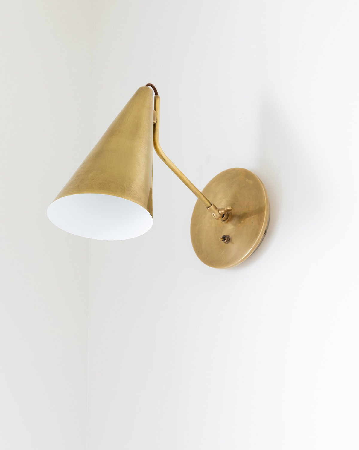 Set the mood and send light exactly where you want it with the Clemente sconce. The simple but striking gold base makes it an ideal light source because you know it will look good wherever it goes.