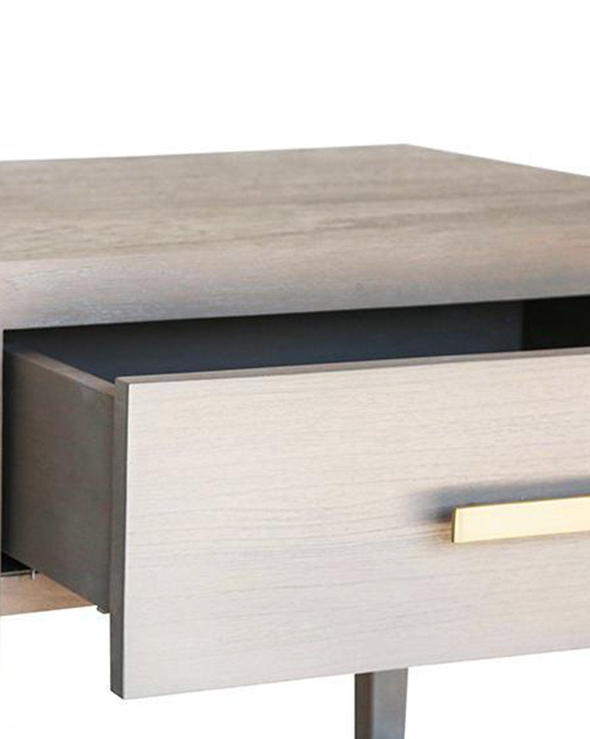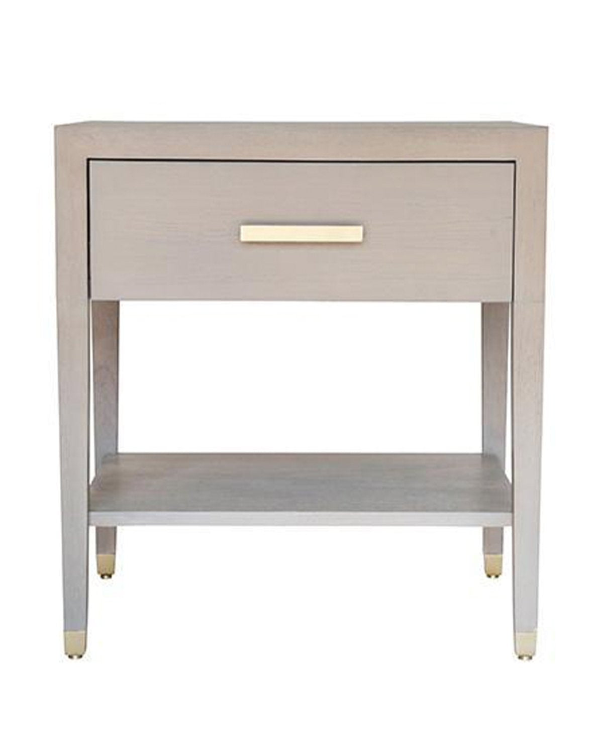With ample storage for its small stature, our Collin Side Table brings form and function to your space. Inspired by 1950’s Italian Design, this side table features an elegant mix of materials with brass-finished foot caps against its gray finished wood frame.