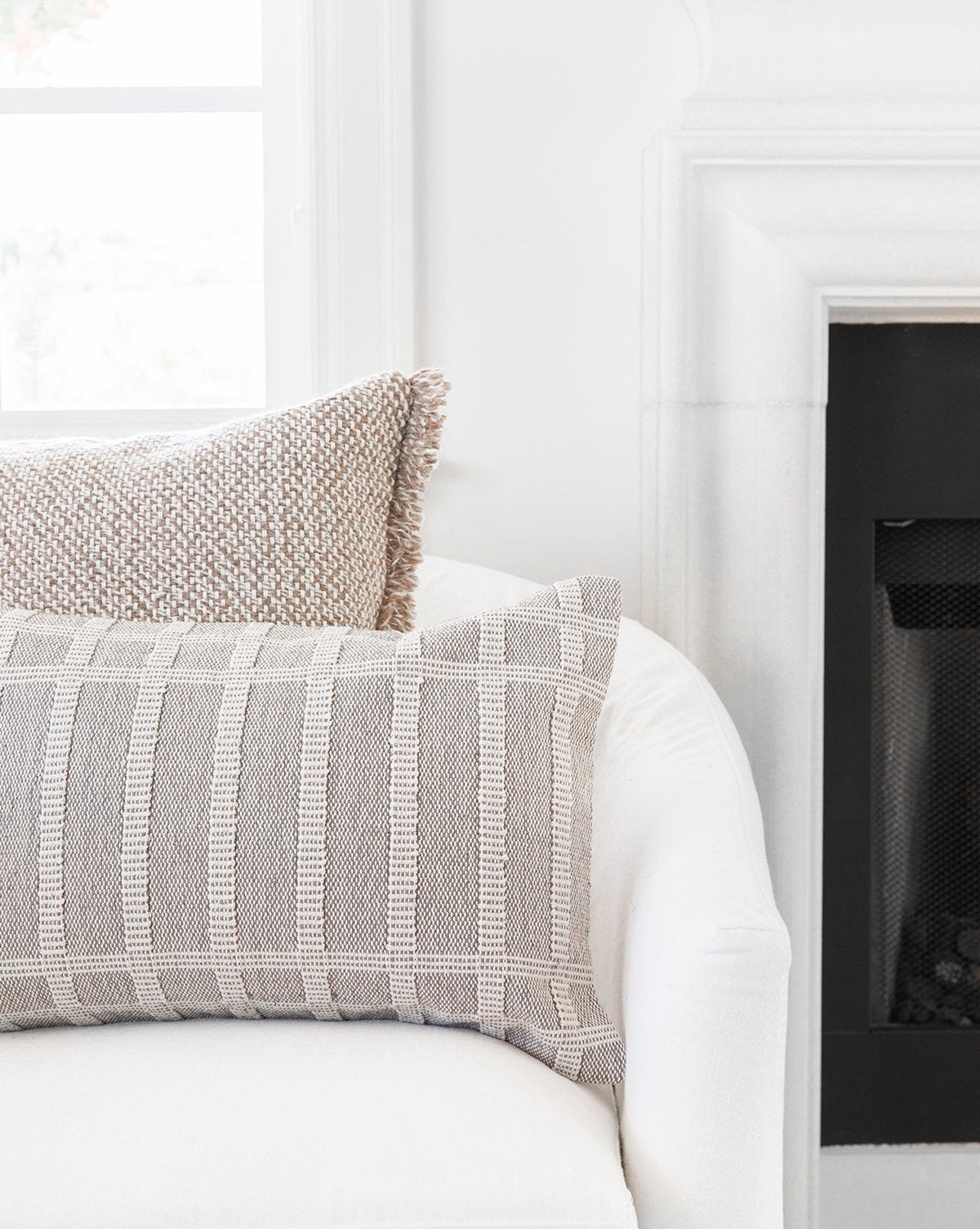 Durable and timeless, our Collins Woven Pillow Cover is hand woven by skilled artisans with decades of experience. A dimensional stripe detail adds dimensional interest to its neutral base for a textural feel that’s both modern and versatile.