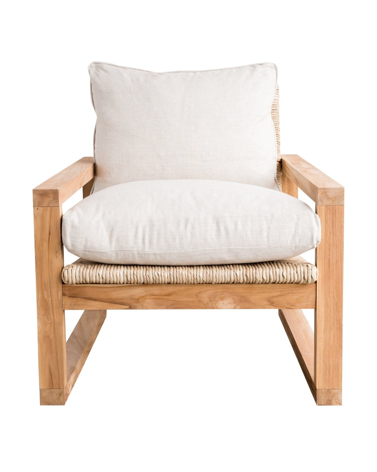 With a modern frame crafted from Teak, our Cosette Chair brings the best of both form and function to your space. Fitted with a natural, wrapped laid back seat, this chair adds comfortable seating, while two neutral cushion colors finish off your living room design with a relaxed feel.