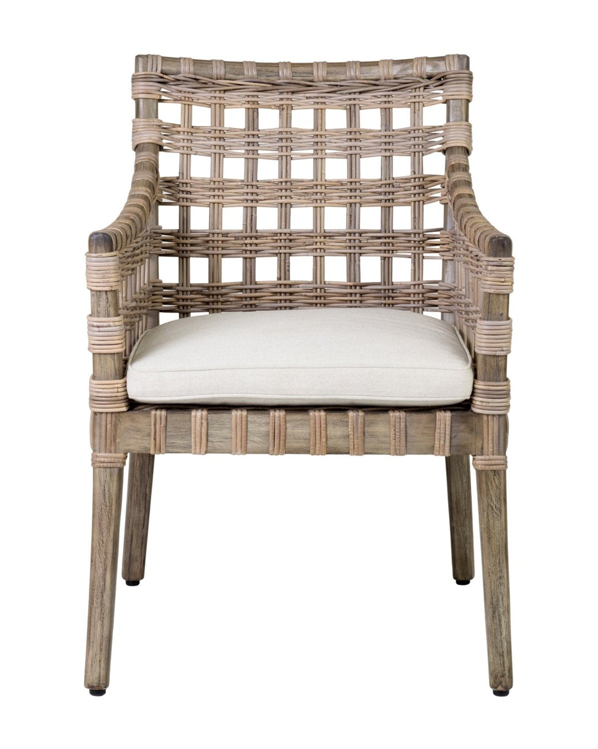 Natural rattan ropes form a thick square weave around the wooden frame of our Damien Chair. It has all the natural texture and tones you’d want while being versatile enough to dress up or down for any space.