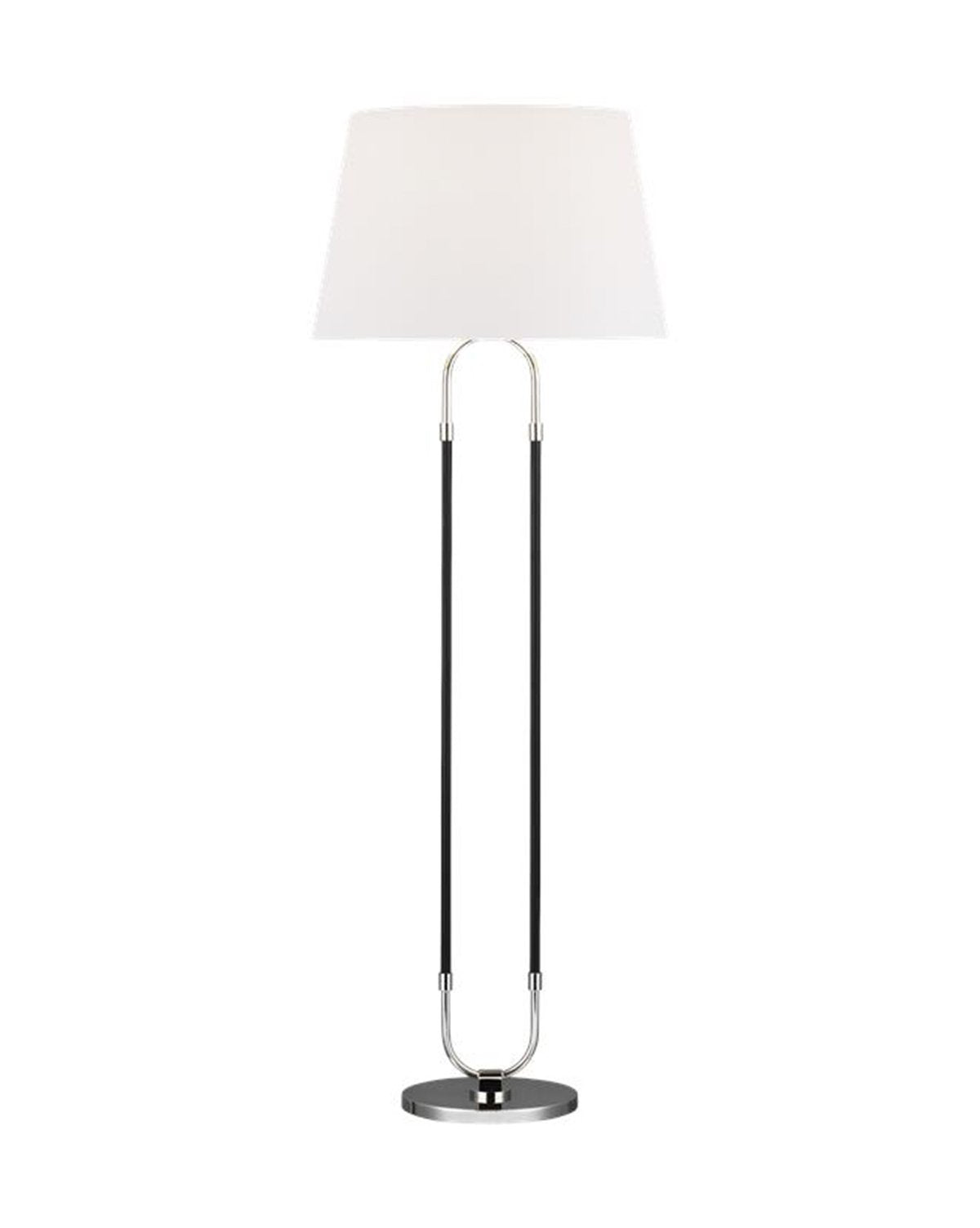 With a modern feel, the Danica Floor Lamp puts mixed materials on display with its sophisticated, shapely form. Featuring a base finished in either a time worn brass or polished nickel, leather details on the arms in either a rich cognac or solid black complement the unique frame, while adding another layer of chic style to your home design.