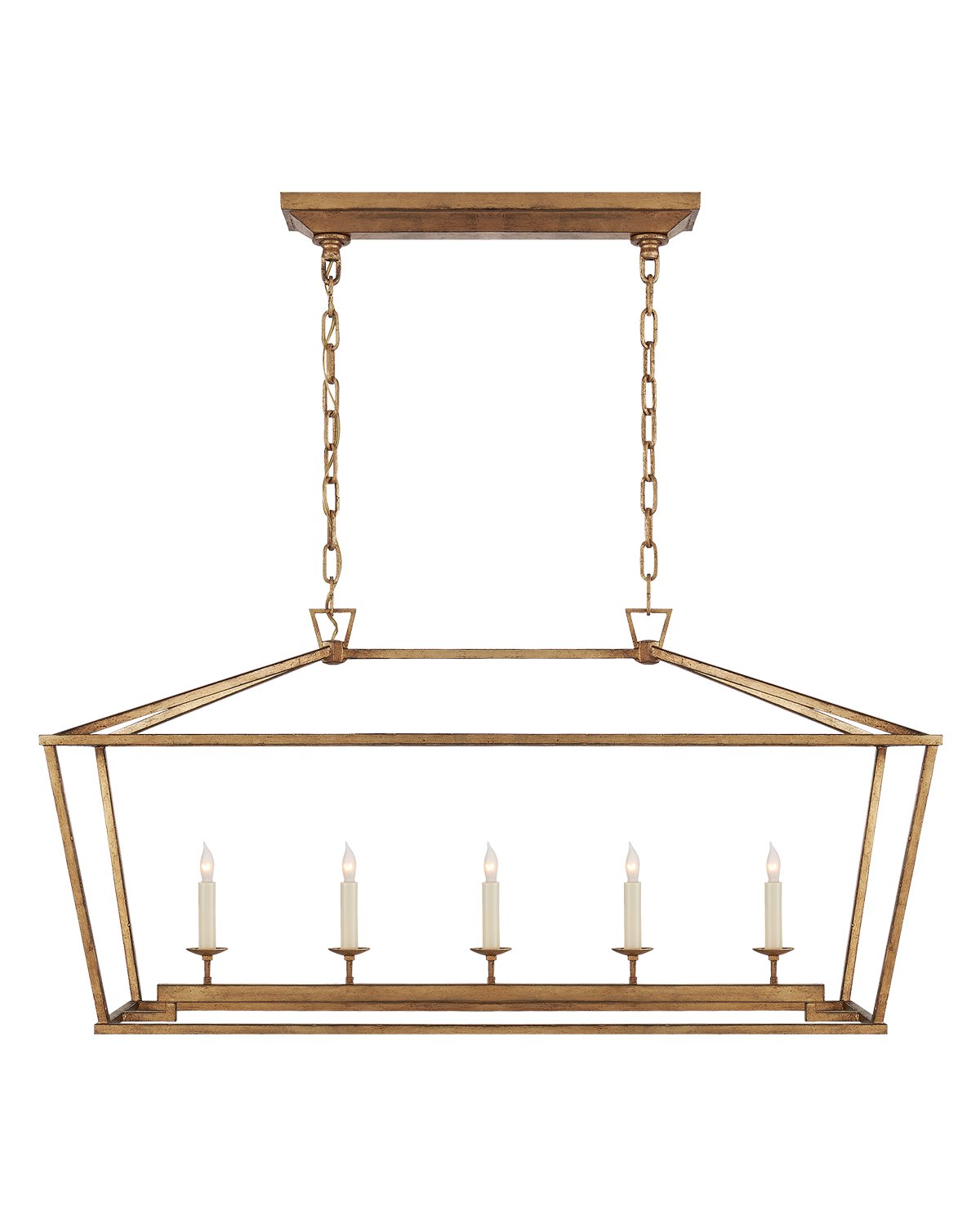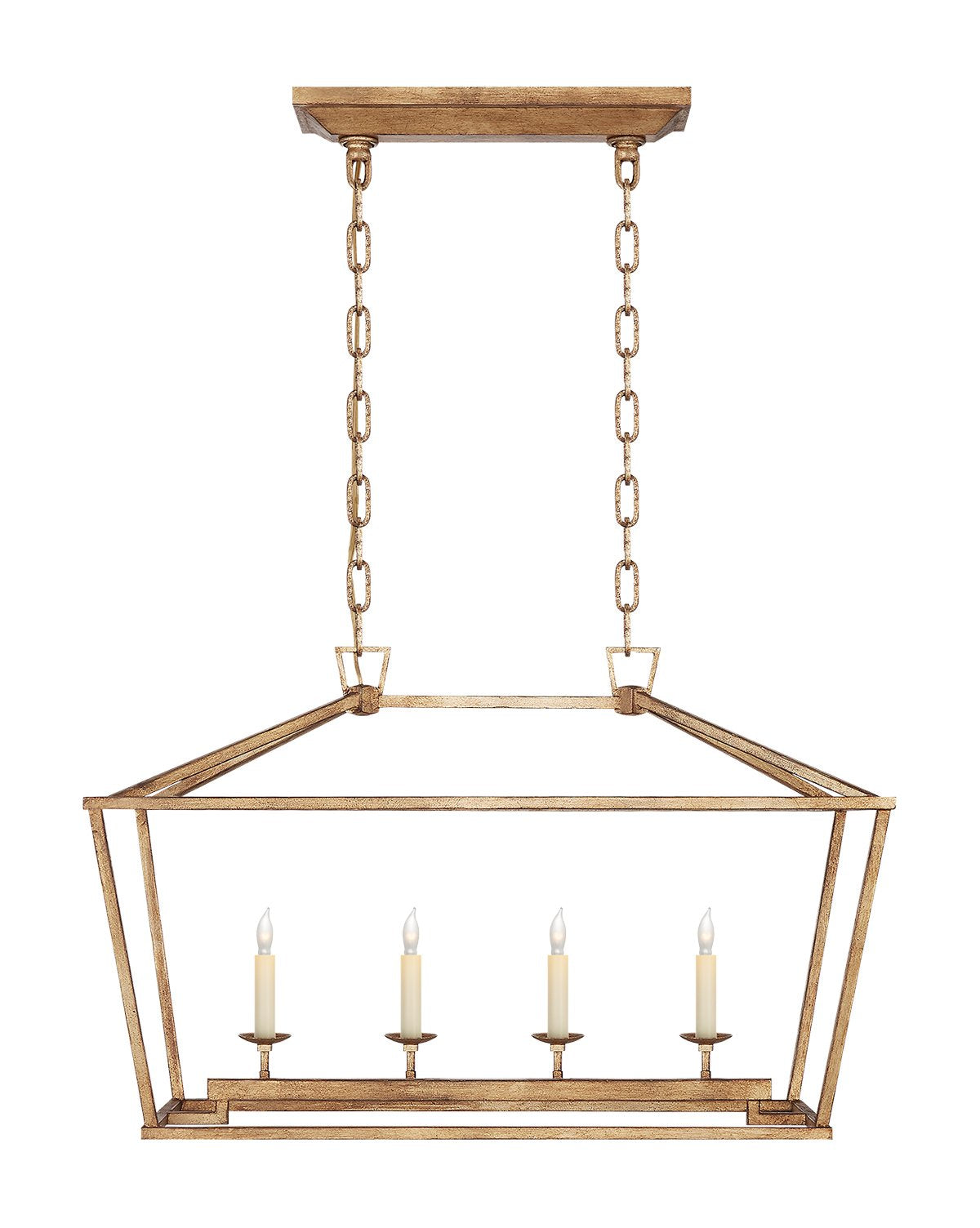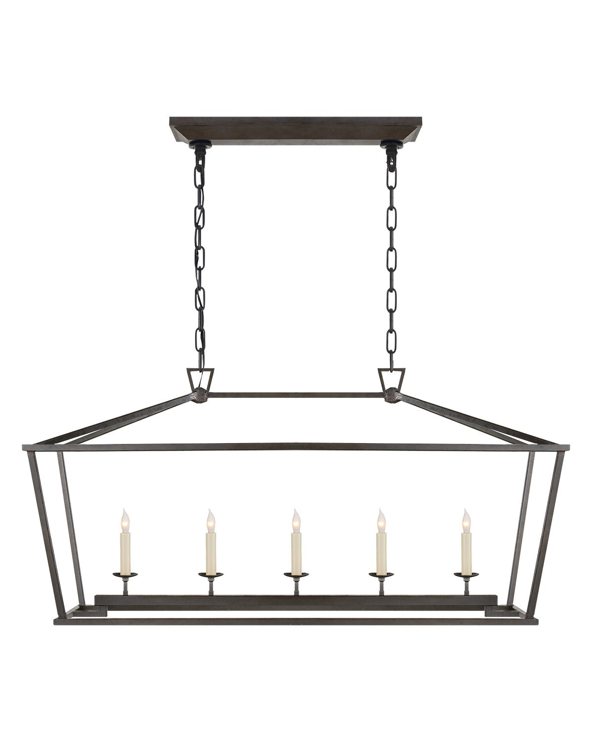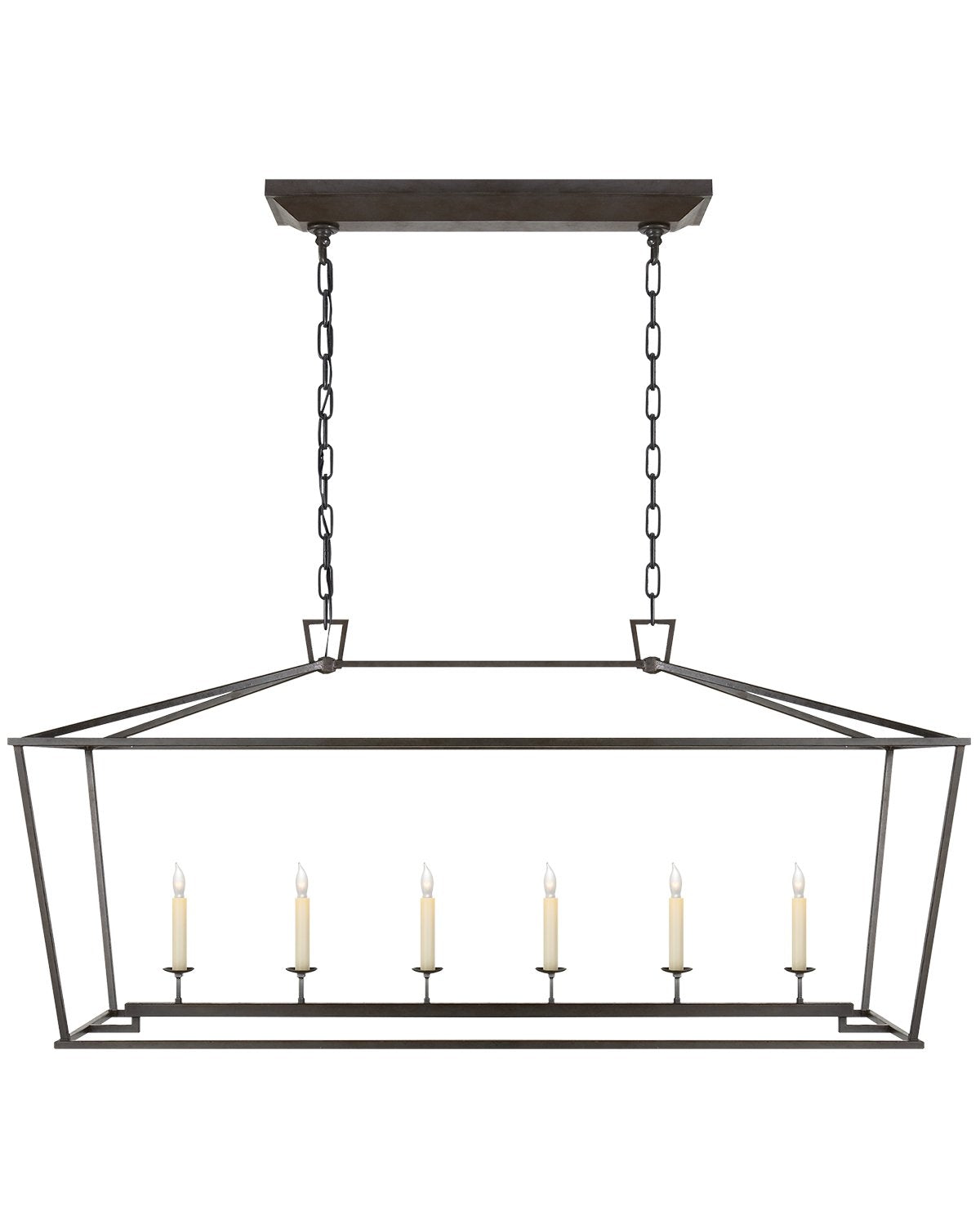 Make a statement with our Darlana Linear Lantern. Featuring a wrought iron frame encasing a classic candelabra, this suspension light adds an upscale feel to existing traditional design. Update your lighting with one of this pendant's four unique finish options.