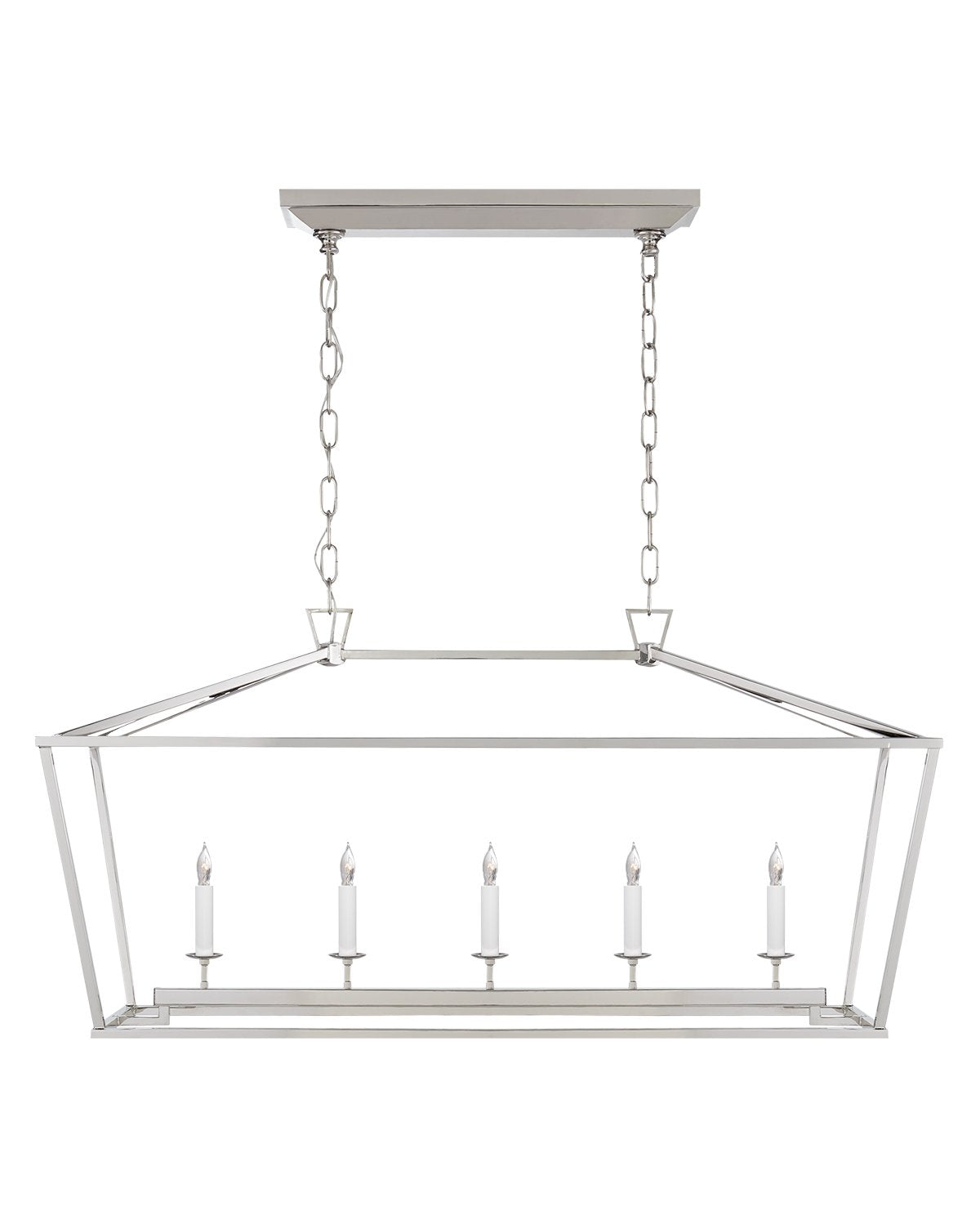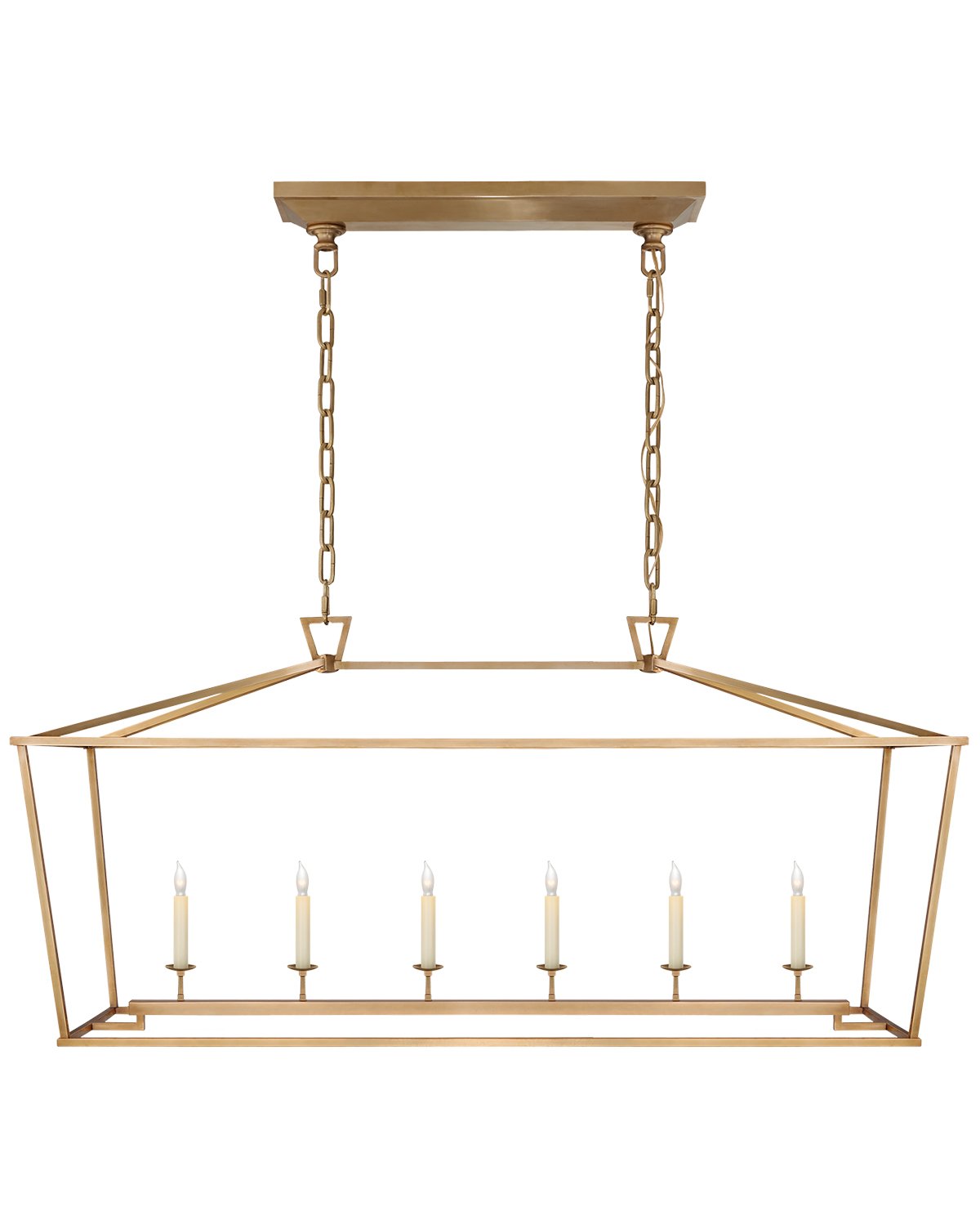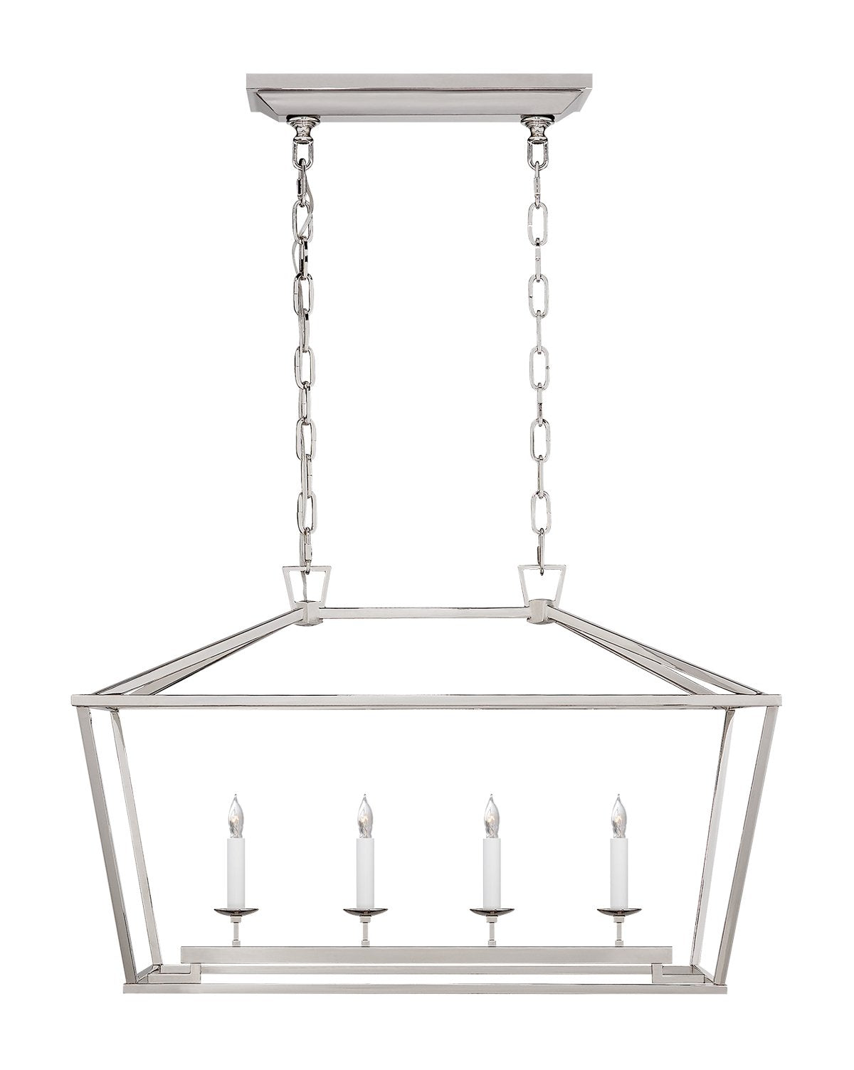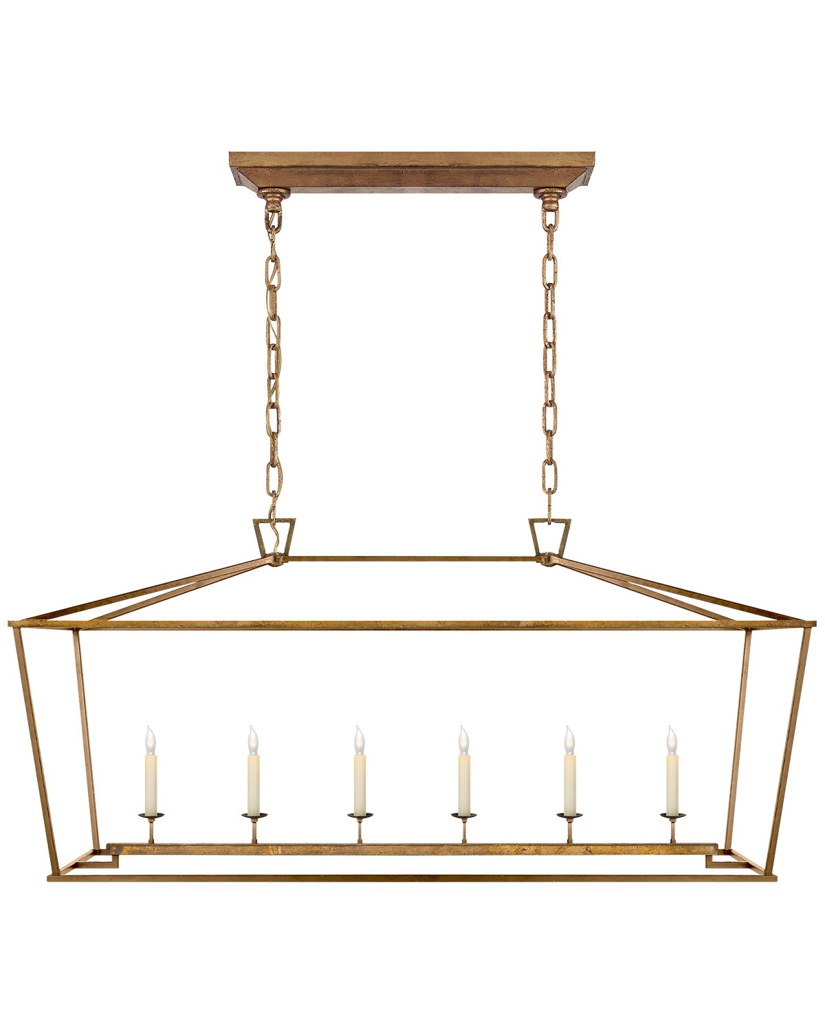 Make a statement with our Darlana Linear Lantern. Featuring a wrought iron frame encasing a classic candelabra, this suspension light adds an upscale feel to existing traditional design. Update your lighting with one of this pendant's four unique finish options.