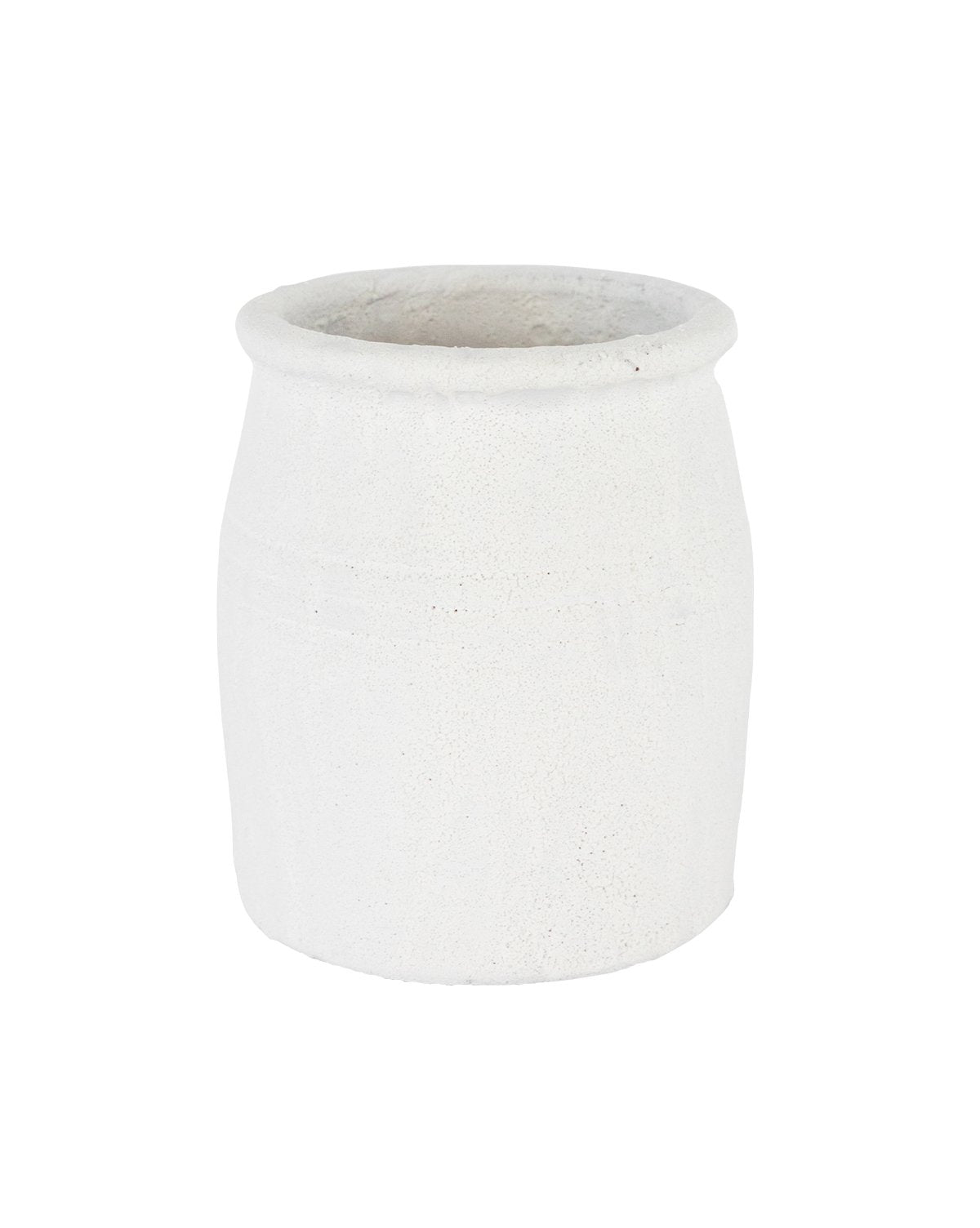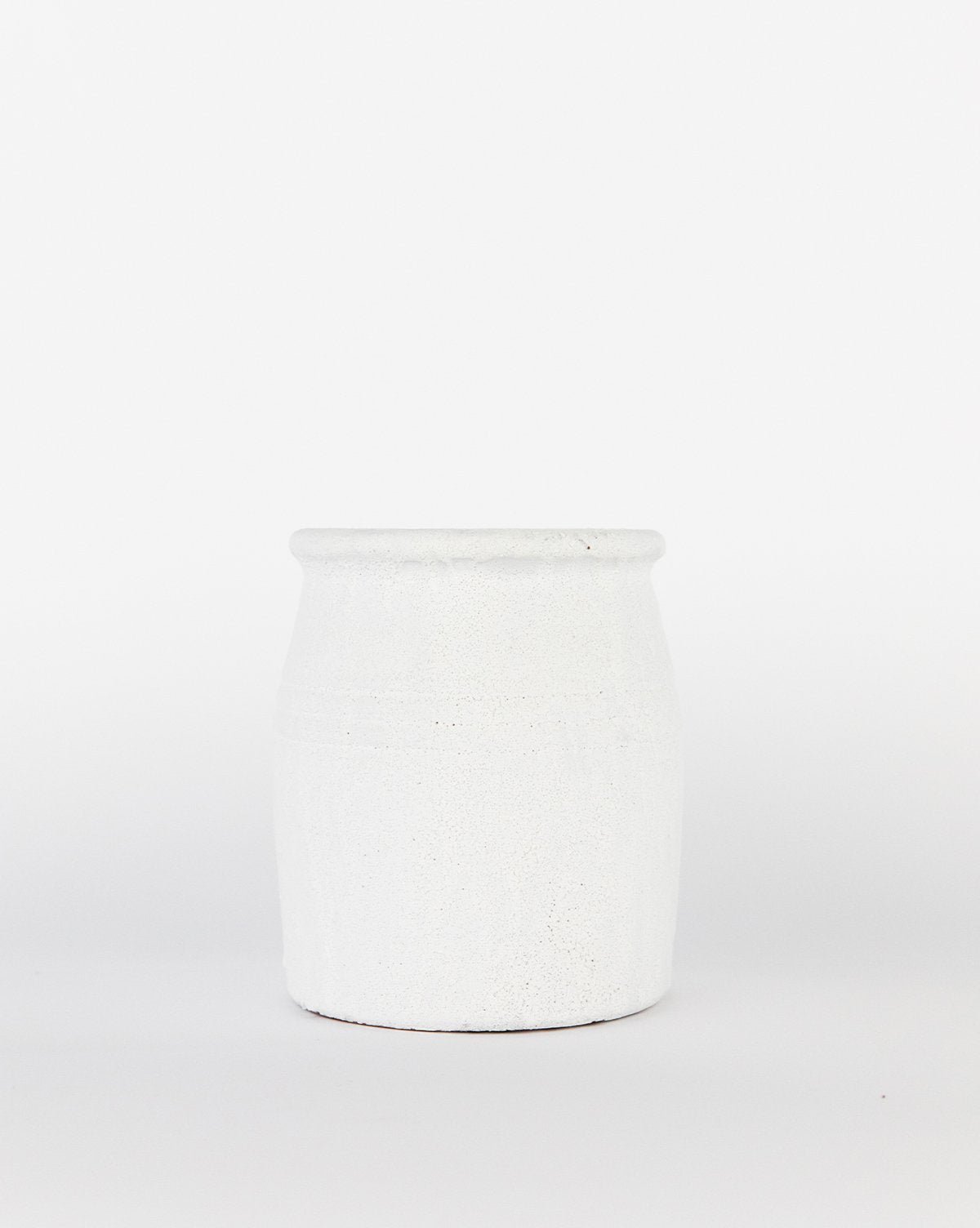 Our Distressed Chalk Glaze Crock draws the eye with antique-inspired details. From the subtle 3 lined detail, to the rounded rim, its imperfect terracotta form brings depth and dimension while holding all your everyday kitchen tools.