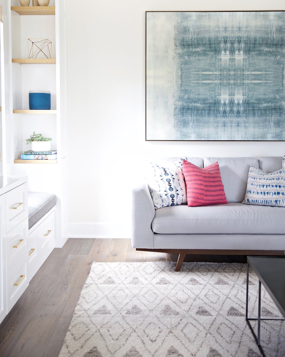 We love this moody piece by Carol Benson-Cobb. Its vague focal point and complex blues and creams draw the viewer in and evokes feelings of fluidity and emotion.