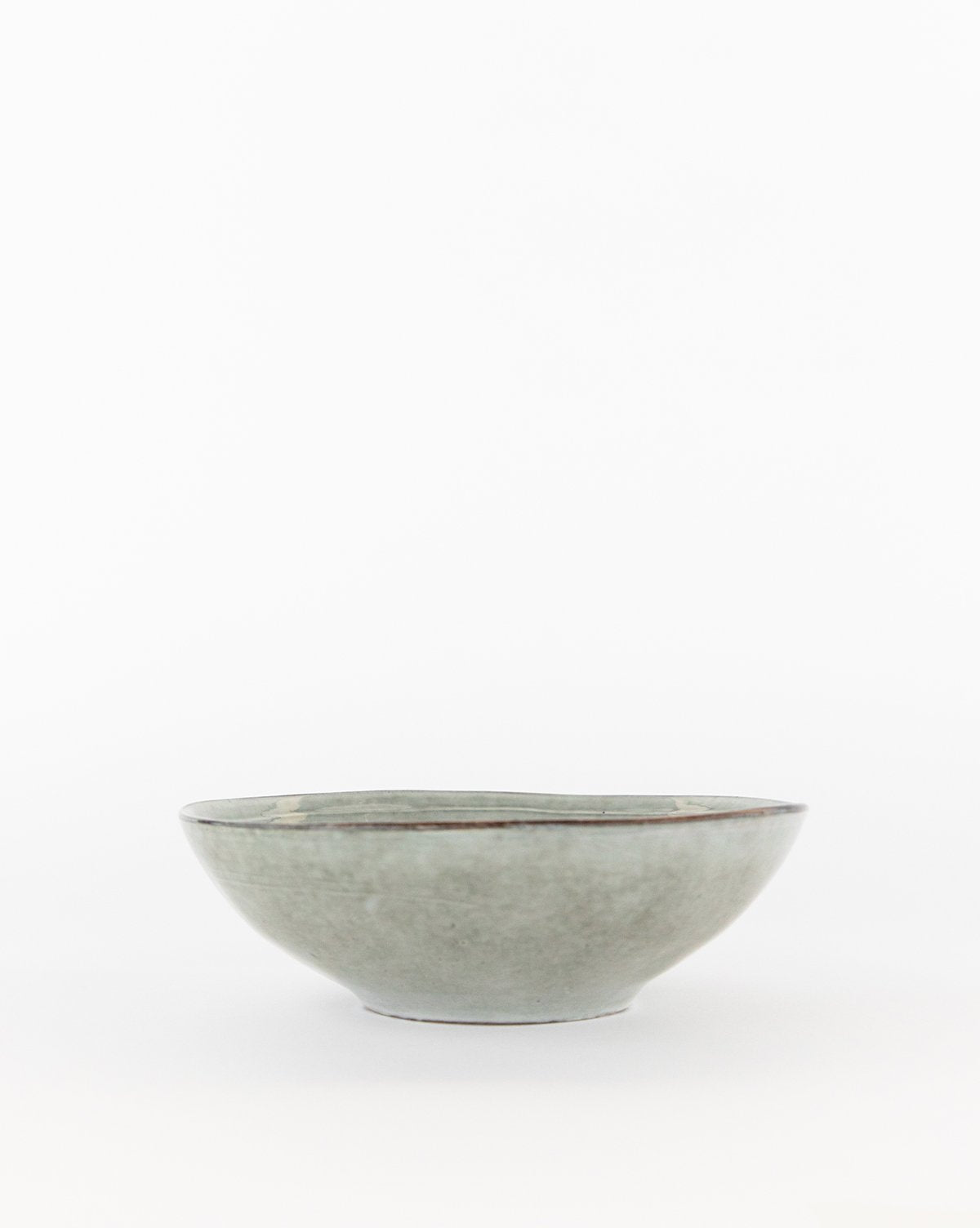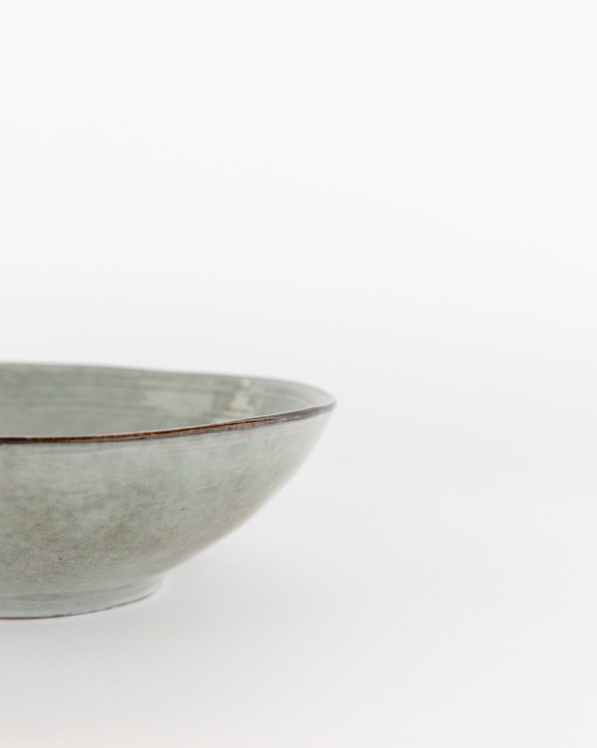 With a tonal green-gray color, the Edelman Produce Bowl adds dimension to your kitchen decor filled with your favorite produce, or simply styled alone. Crafted from ceramic and finished with a smooth glaze, its simple details add just the right amount of visual interest.
