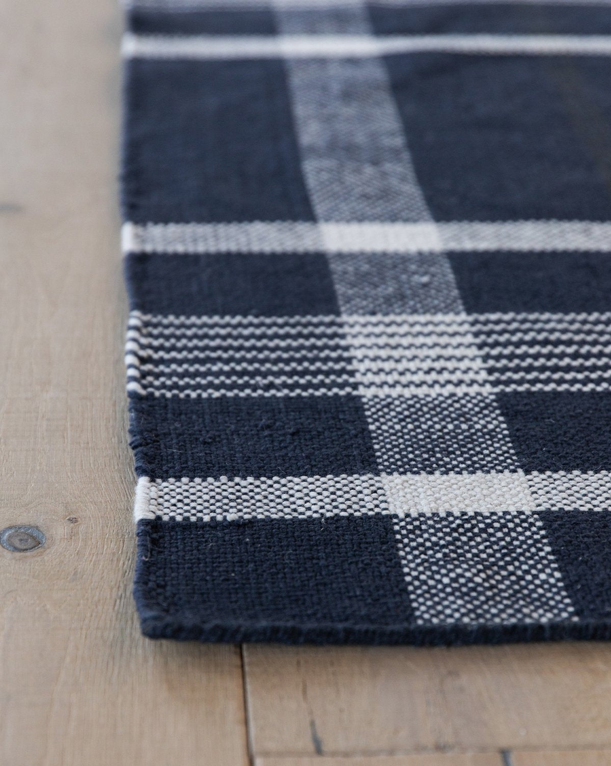 With an ultra-durable design, the Edina Plaid Rug brings comfort to both your indoor and outdoor spaces. A wider take on the standard plaid motif, varying stripes with gray tones contrast against a dark blue background for the perfect amount of visual interest. Great for high traffic areas, this rug can be sprayed off when dirty, and it’s reversible!