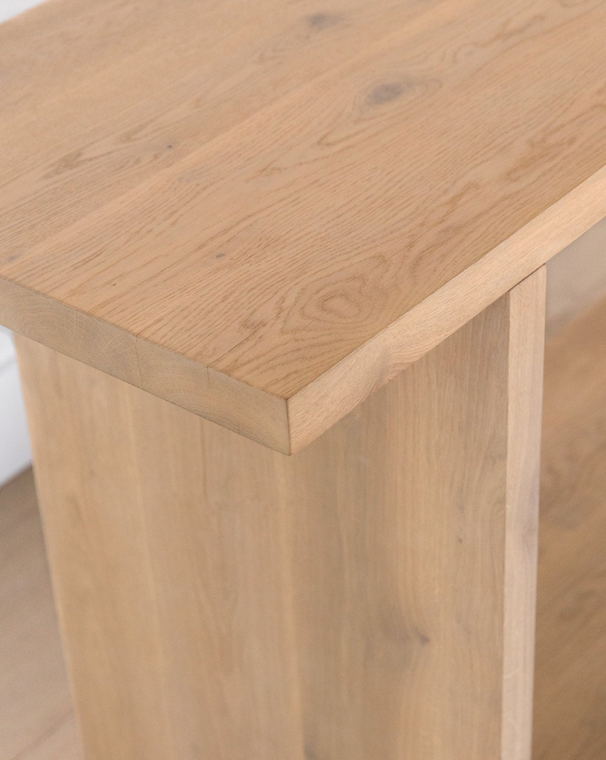 It’s no question that we love light and airy design, so we decided to stay true to brand when designing the simple, modern form of our Eileen Console Table. Crafted entirely from white oak, this console plays with unique joinery and connections for added interest. Complementing anything from vases to books, use its sophisticated form as a base for the perfect entryway vignette.