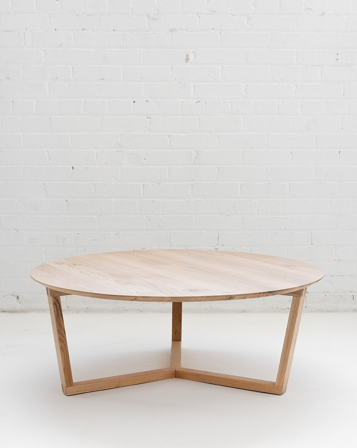 The Erin Coffee Table’s tripod form looks good from any angle––complete with a solid oak construction that enhances its clean lines and contemporary style.