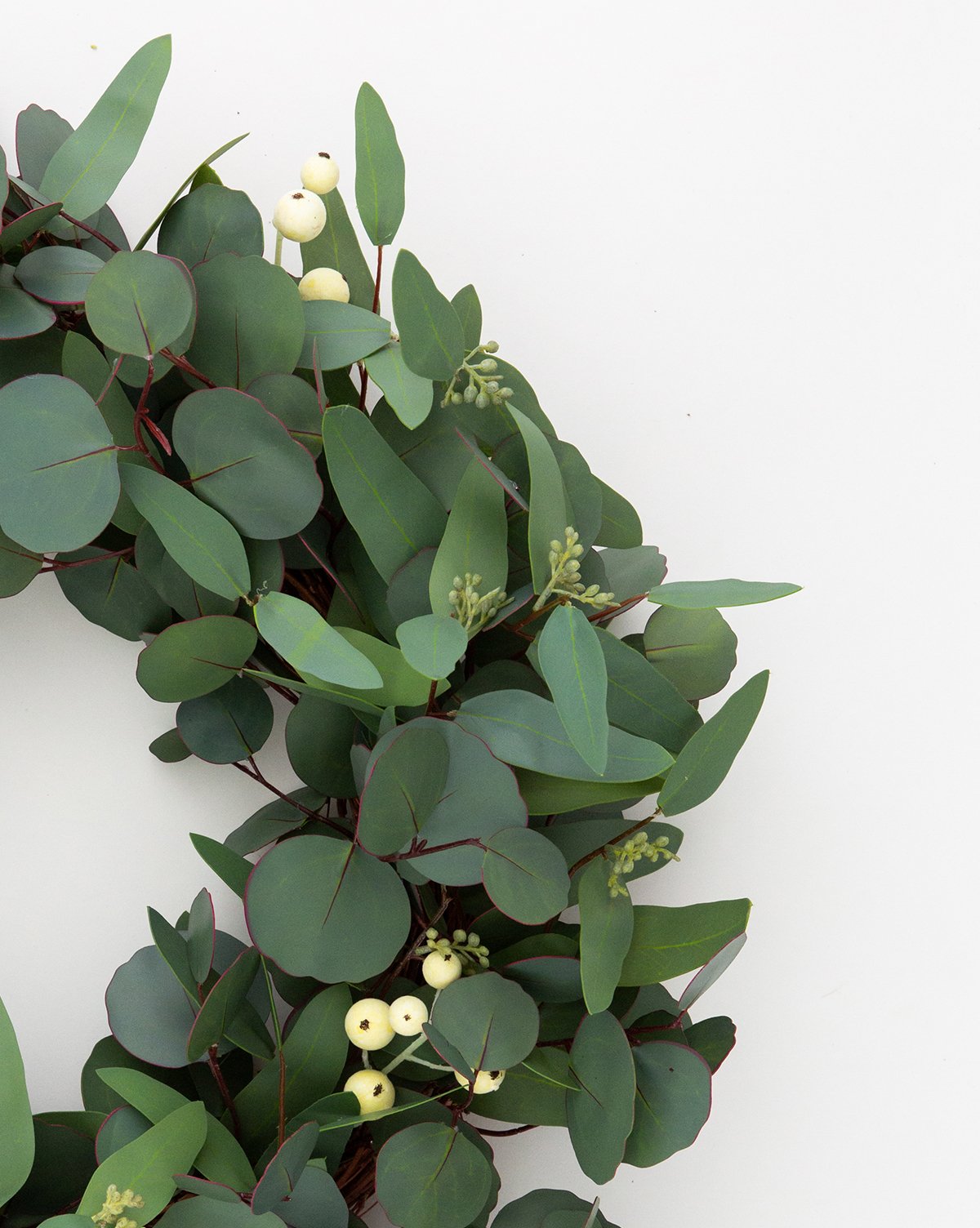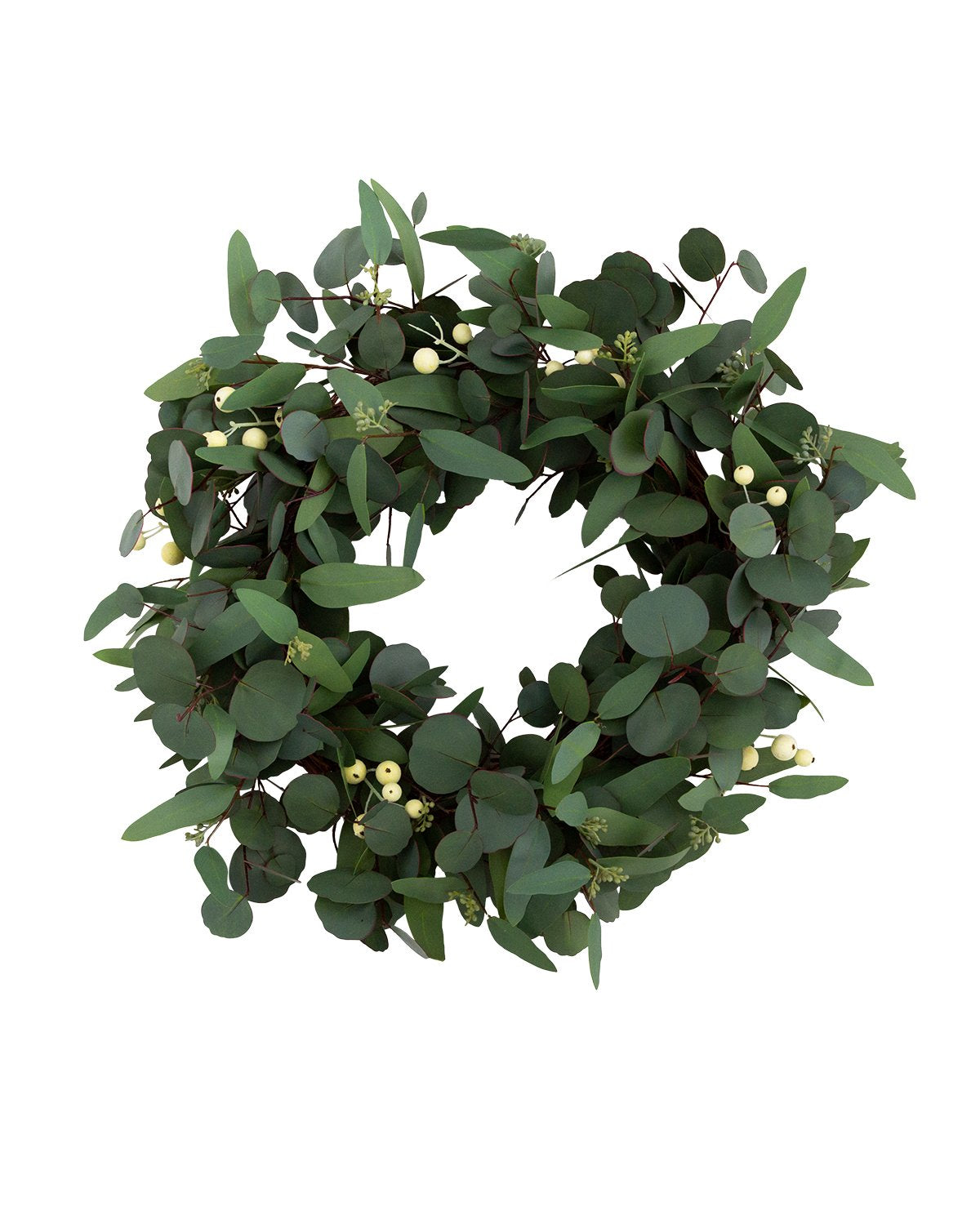 Breathing life into your front door design, our Faux Eucalyptus Berry Wreath brings beauty throughout all four seasons. With fresh-looking greens and accented berries, this full arrangement adds dimension styled alone or with bells for a refined holiday accent.