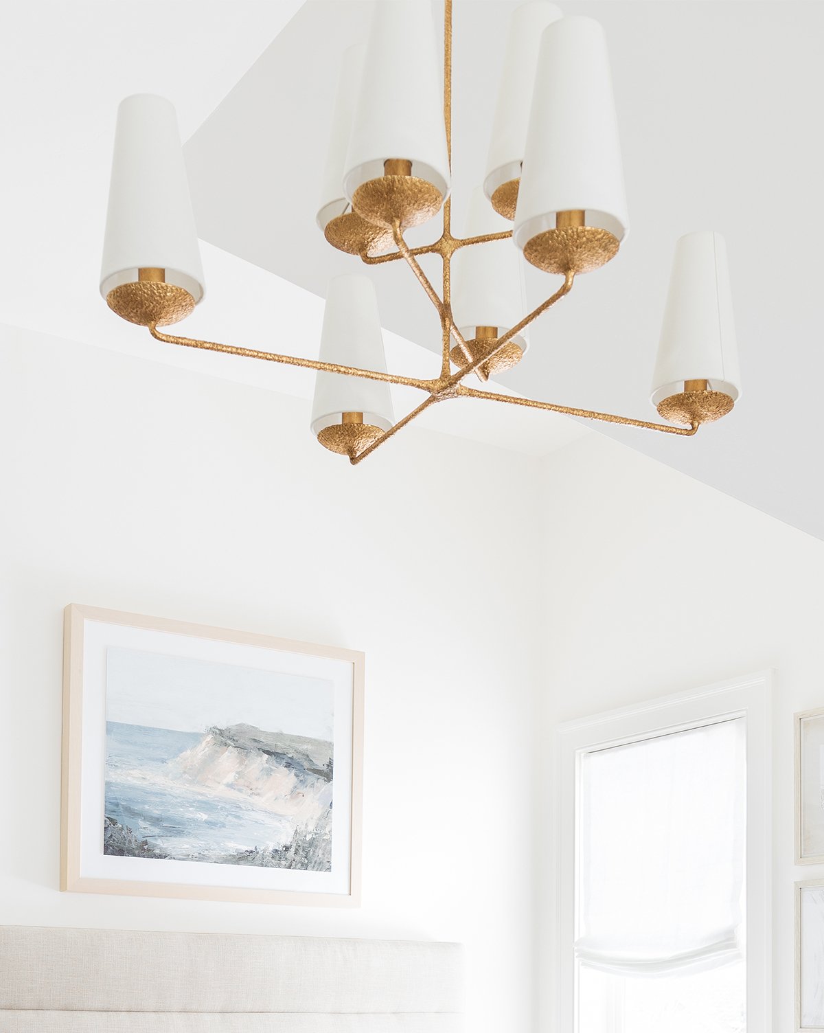 The Fontaine Offset Chandelier brings dimension and movement to a space with its shallowly tiered frame. Eight uniformly spaced candelabras ensure the light is evenly distributed throughout the room.