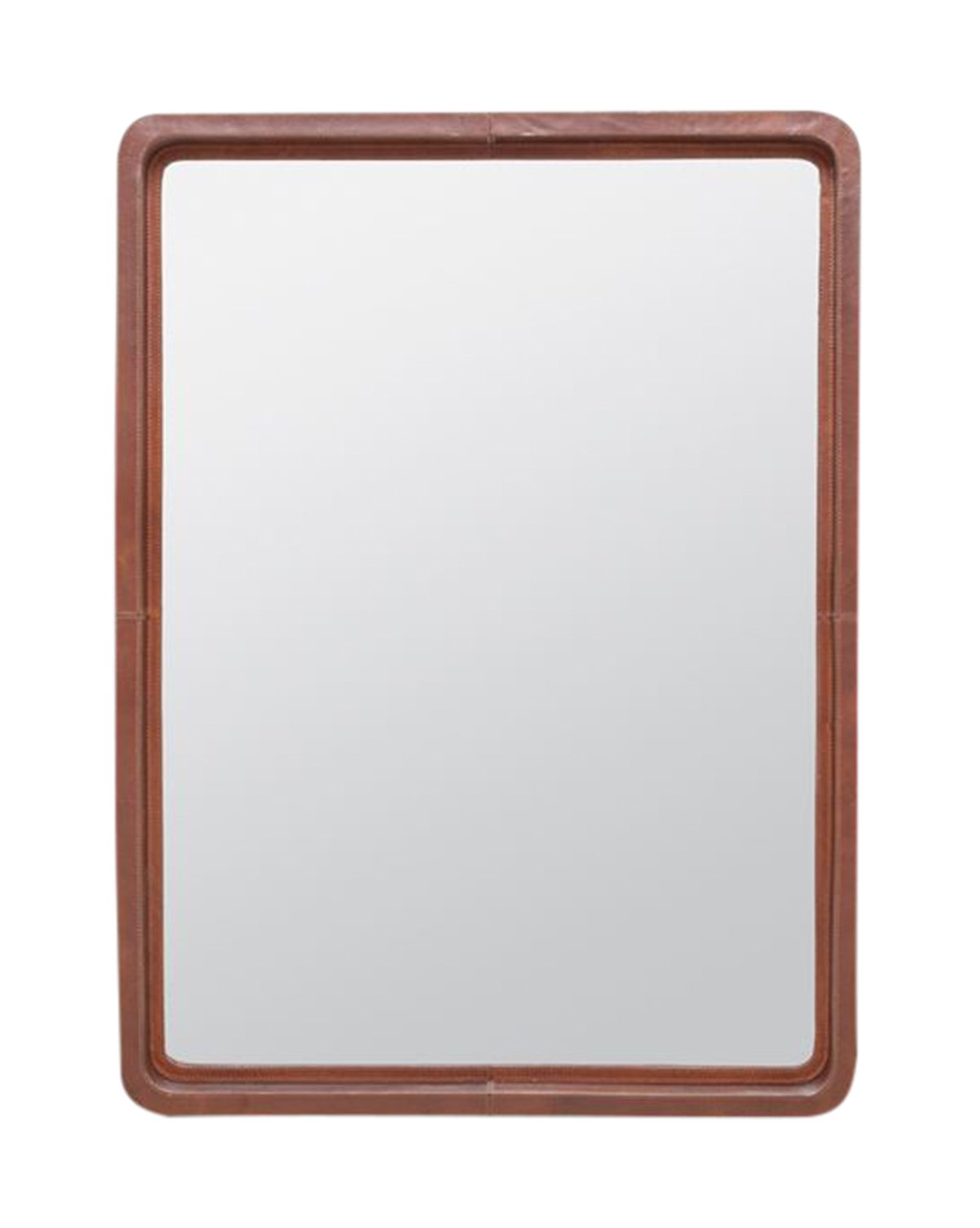 The retro mirror has a full grain tobacco leather with contrast stitching and rounded corners to complete the look. Hang in the home for ultimate sophistication.