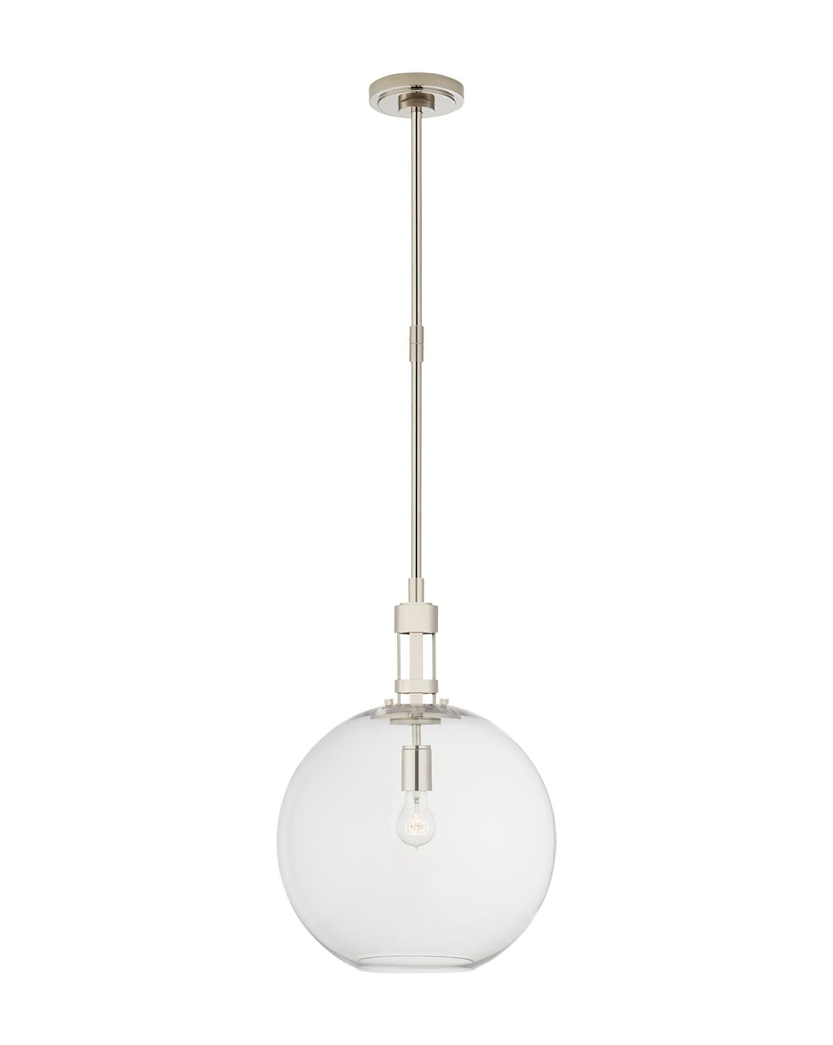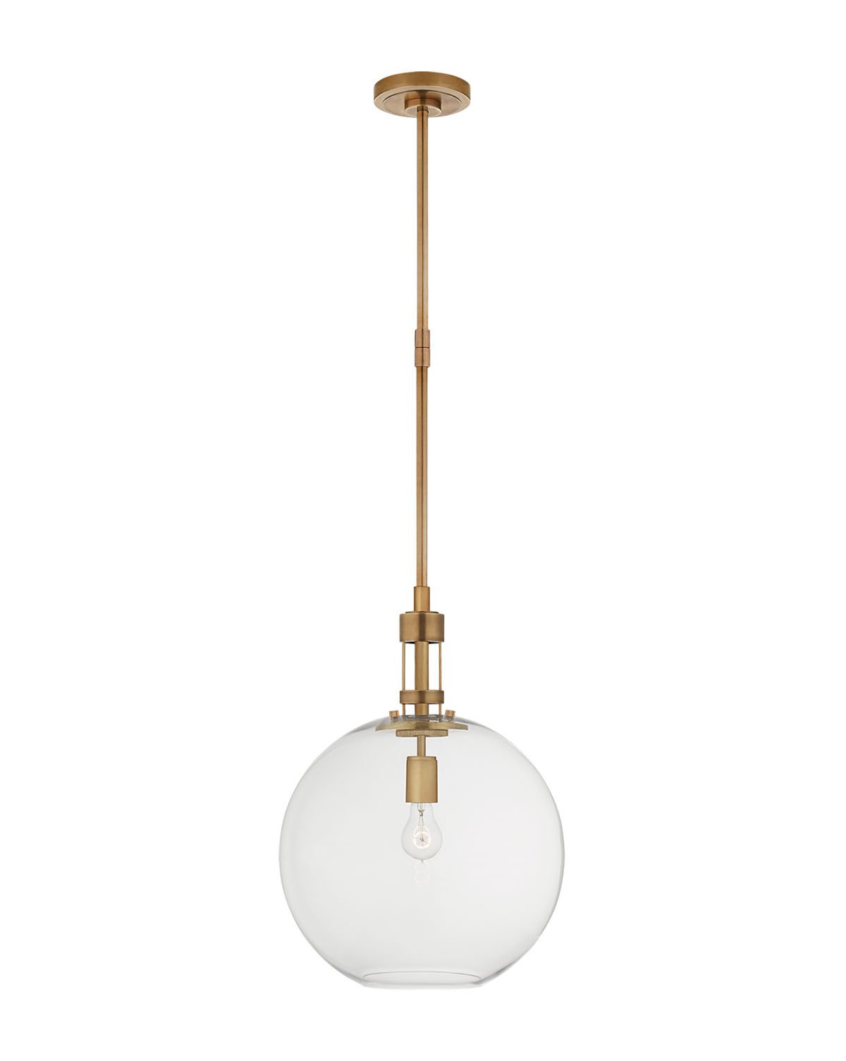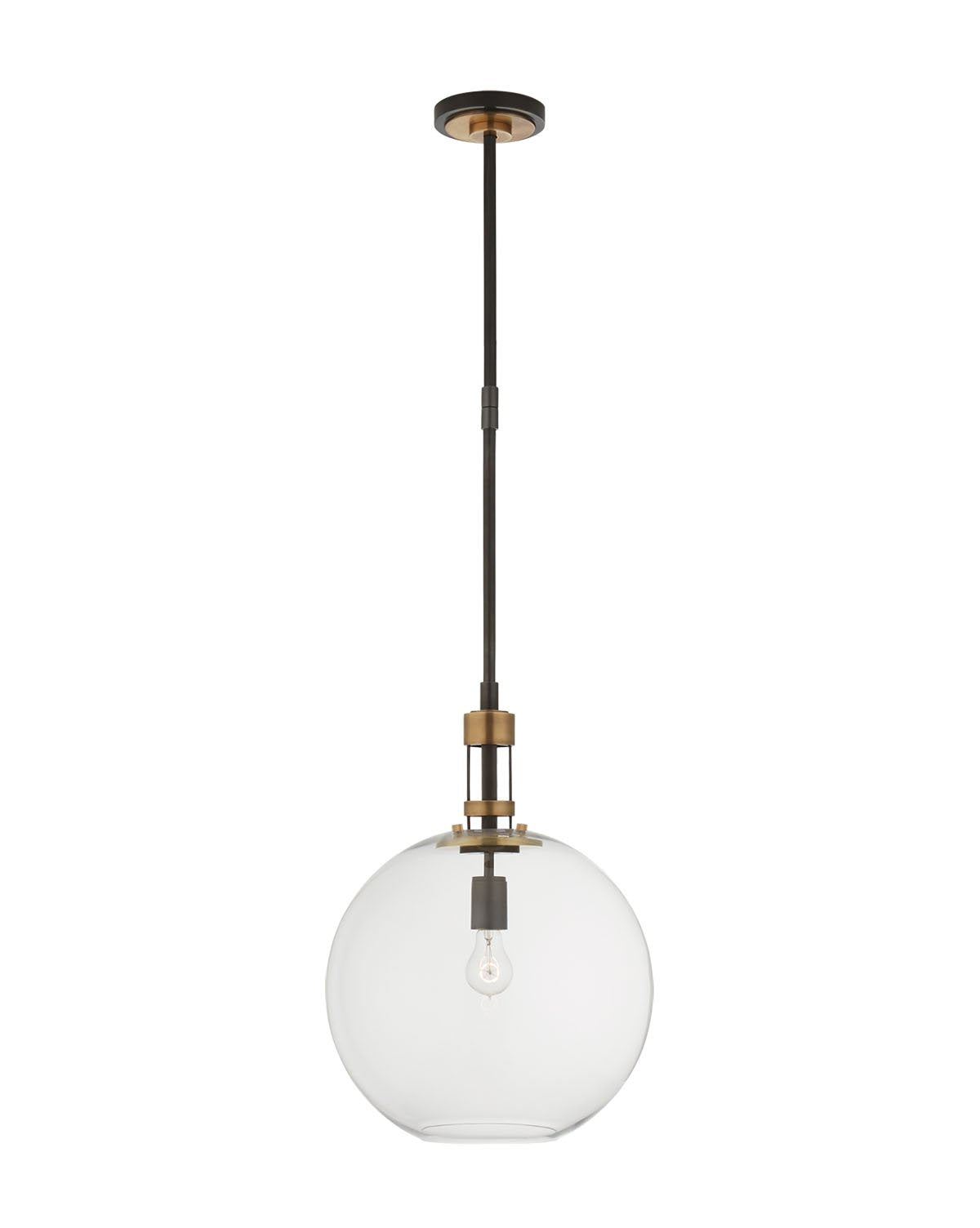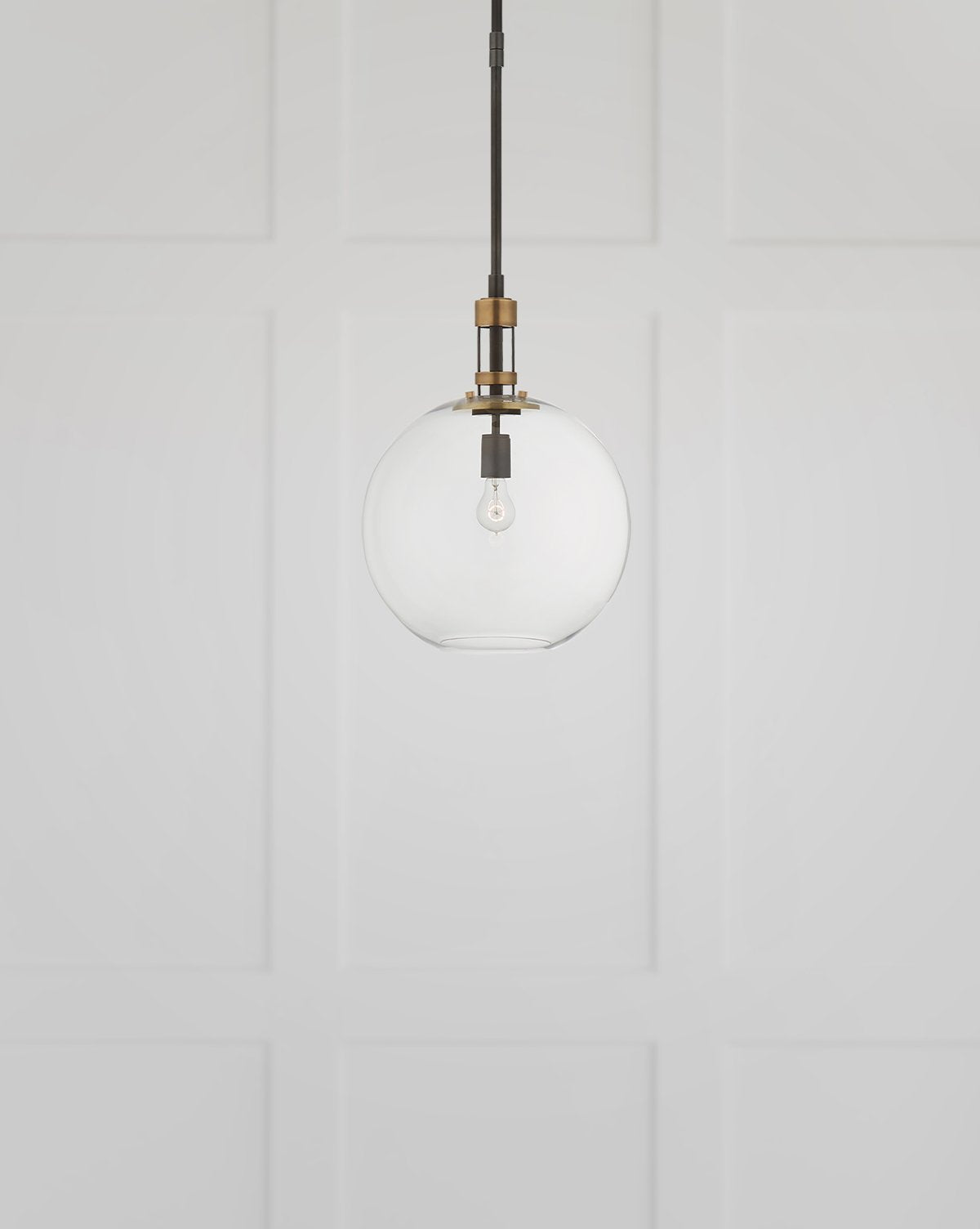 Traditional meets industrial in the shaping of the Gable Globe Pendant. Its round, clear glass shade illuminates your space with a stunning glow, as the metal base adds a modern edge to its classic design.