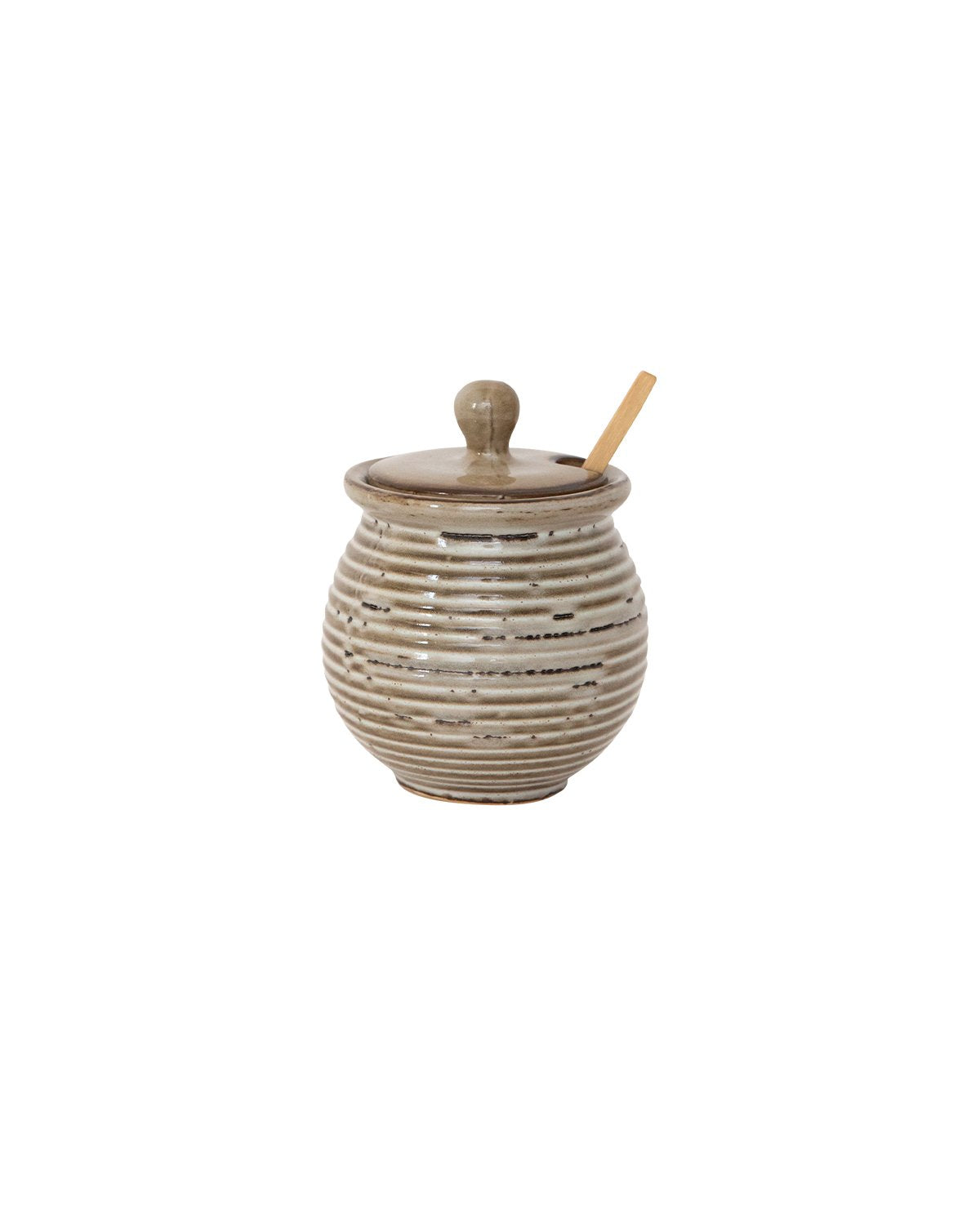 Crafted from stoneware, this rounded silhouette of our Glazed Honey Pot is both charming and durable. A wooden dipper adds to both the function and style of this pot, making the look and use of your kitchen that much sweeter.