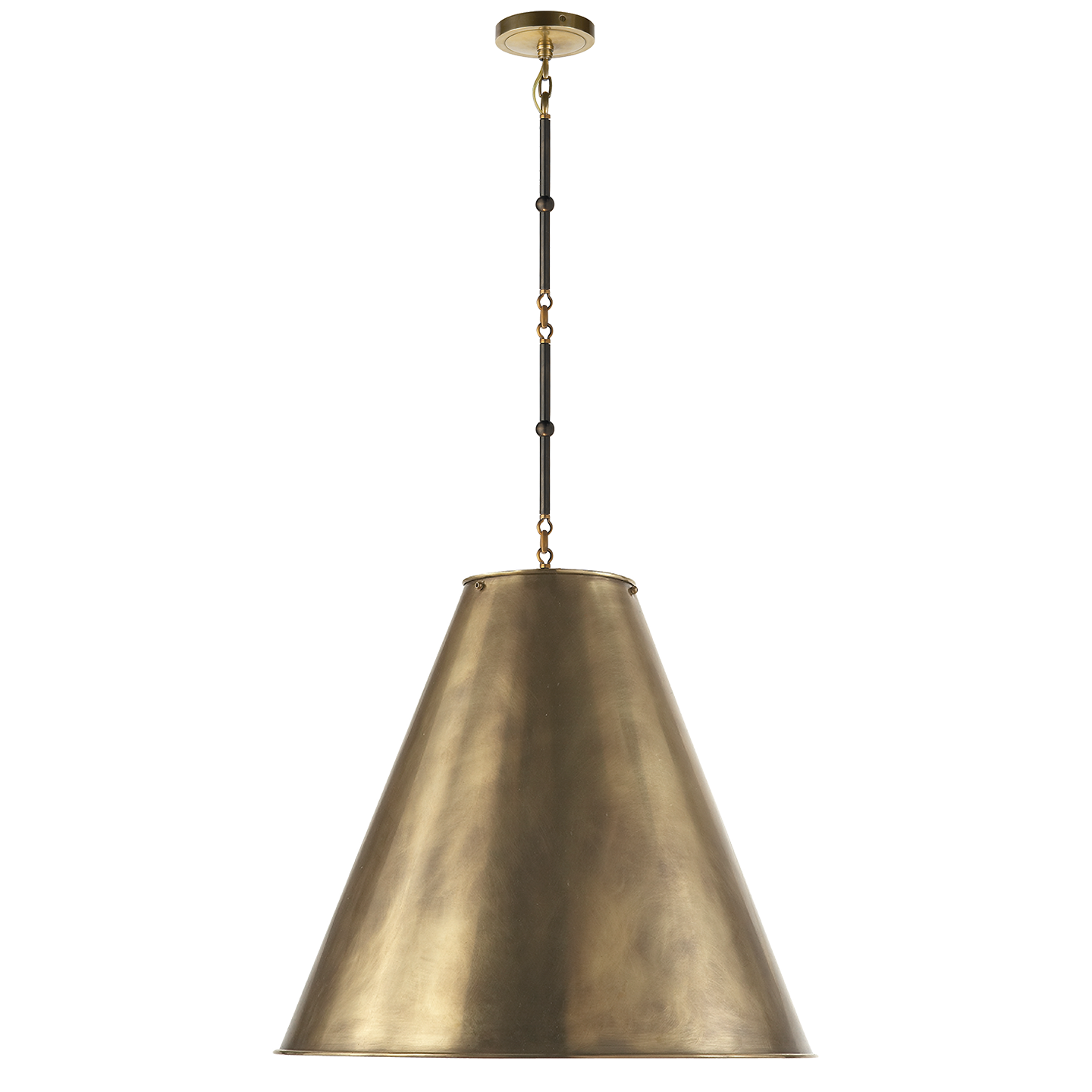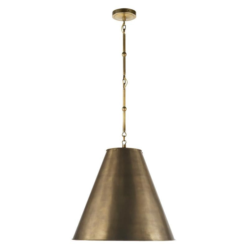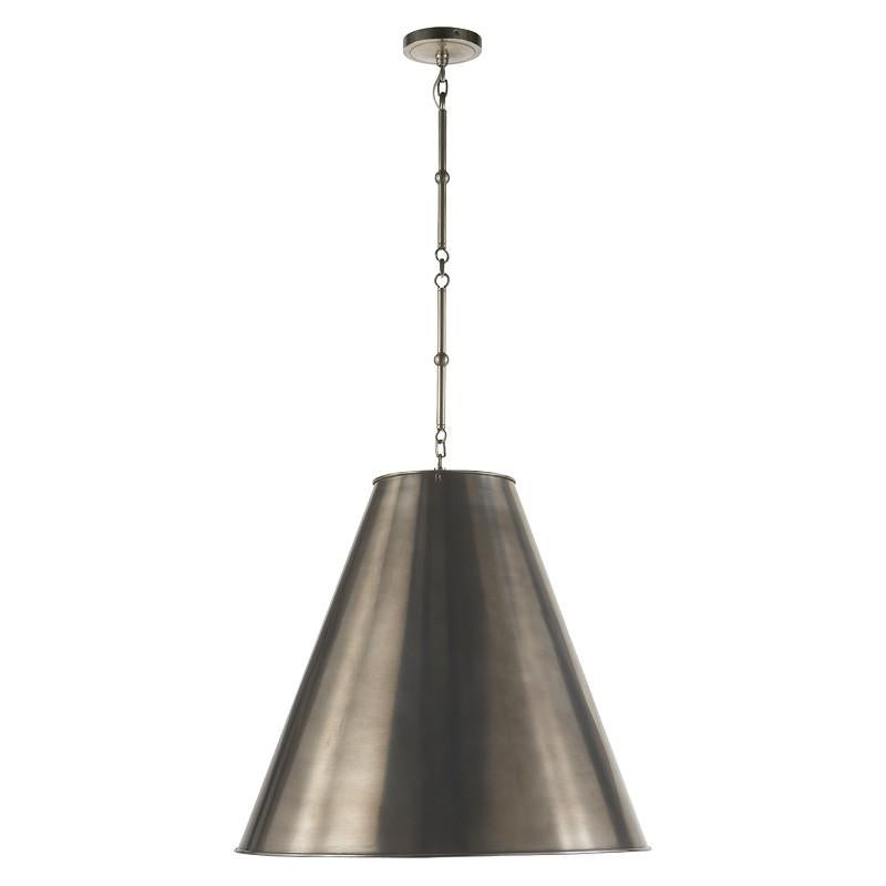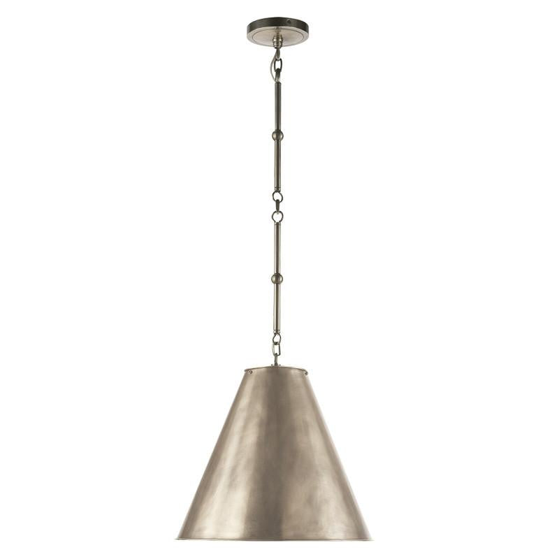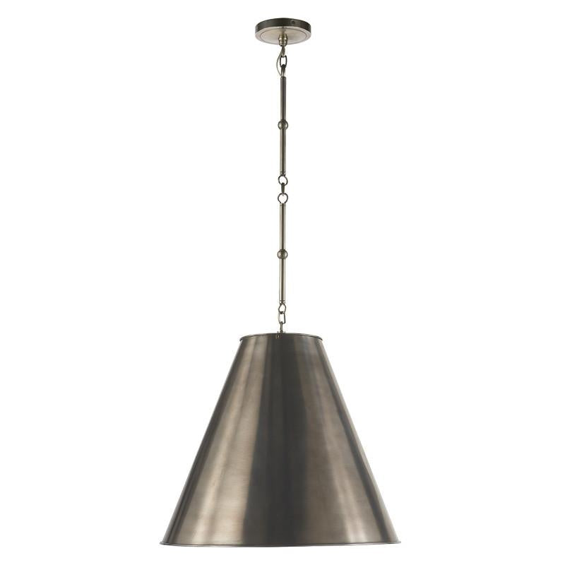 With its modern shade and five brilliant finishes, the Goodman Pendant makes it easy to update home lighting. Bring cool tones to your space with the antique nickel finish, or add warmth with its hand-rubbed antique brass finish.
