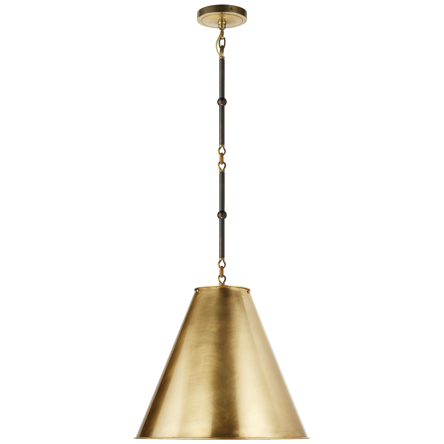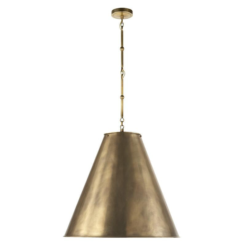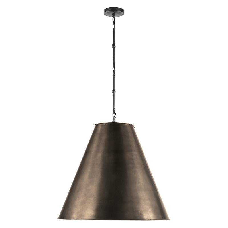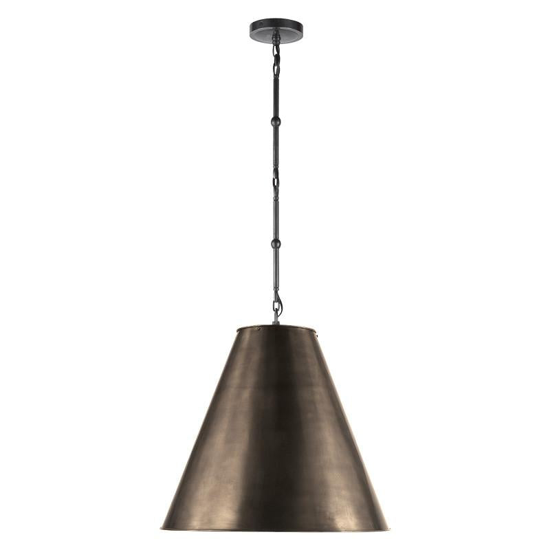 With its modern shade and five brilliant finishes, the Goodman Pendant makes it easy to update home lighting. Bring cool tones to your space with the antique nickel finish, or add warmth with its hand-rubbed antique brass finish.