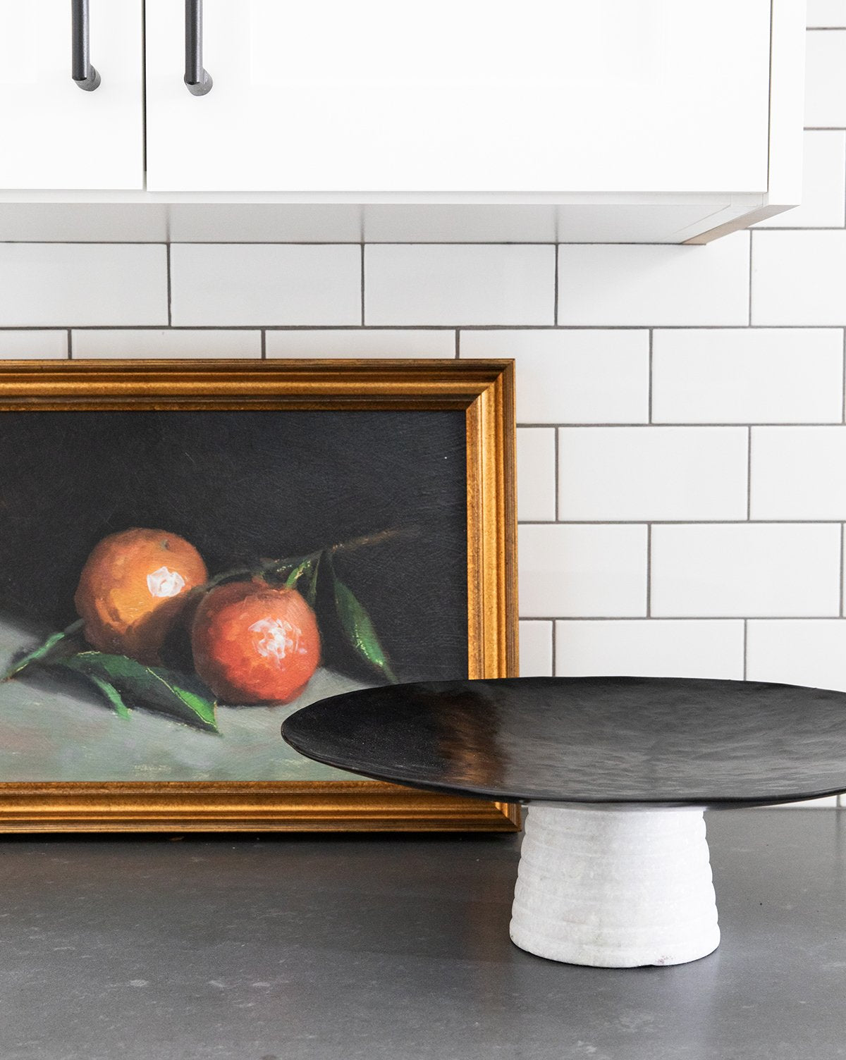 A curated mix of materials comes together to create the elegant form of our Hammered Iron & Marble Pedestal. From the textured and blackened iron top, to the hand chiseled marble base, this pedestal easily elevates your everyday styling!