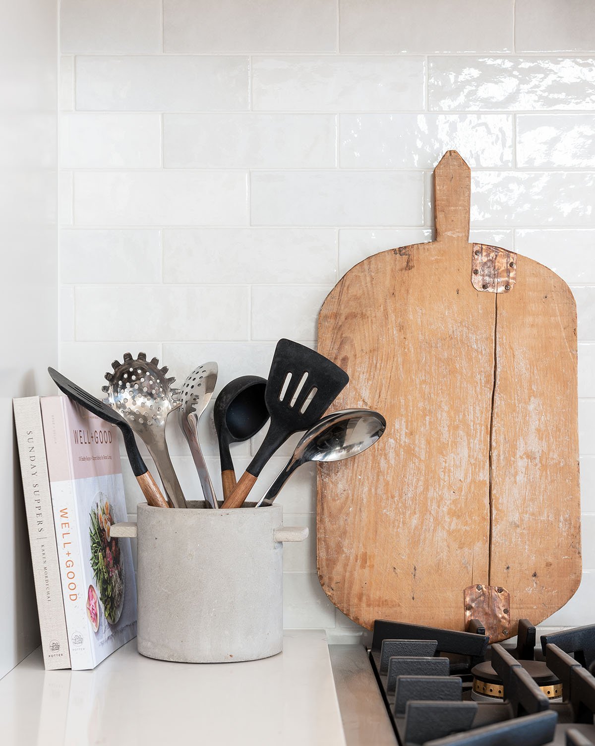 With cool tones and modern cylinder form, the Handled Concrete Crock adds a unique interest to your kitchen space. Its transitional design works in both modern and traditional homes, creating a slightly weathered look and found feel.