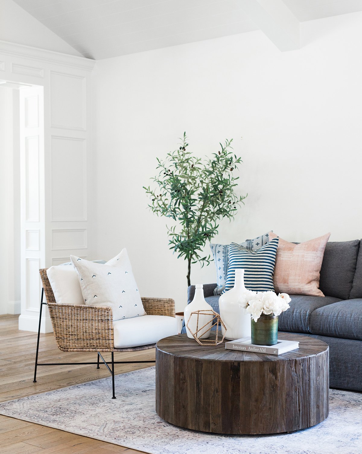 Outfitted with a thick cream cushion, the Hattie Chair plays with visual contrast in its juxtaposed slender black metal frame.  Its natural rattan peel seat adds dimension by bringing organic texture to its design.