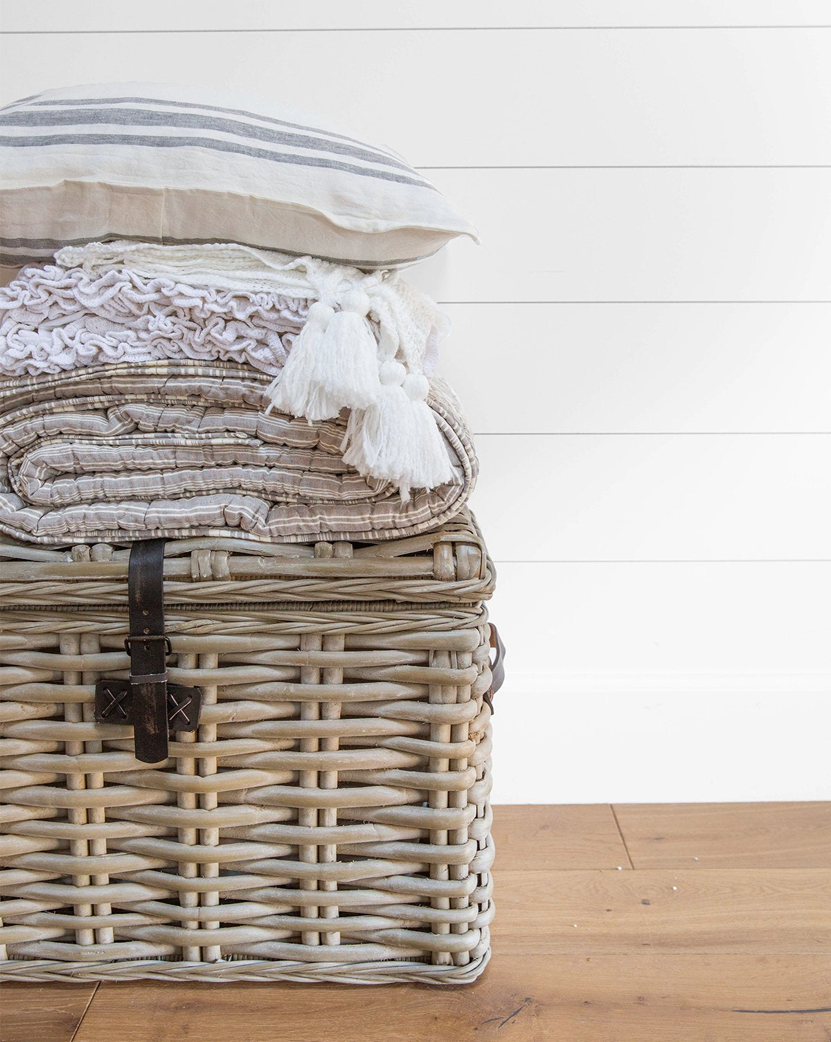 Enlarged and varied ticking stripes give a modern edge to a timeless classic in the Huntington bedding collection. Three carefully chosen color options provide for versatile styling and make it easy to refresh any bedroom.