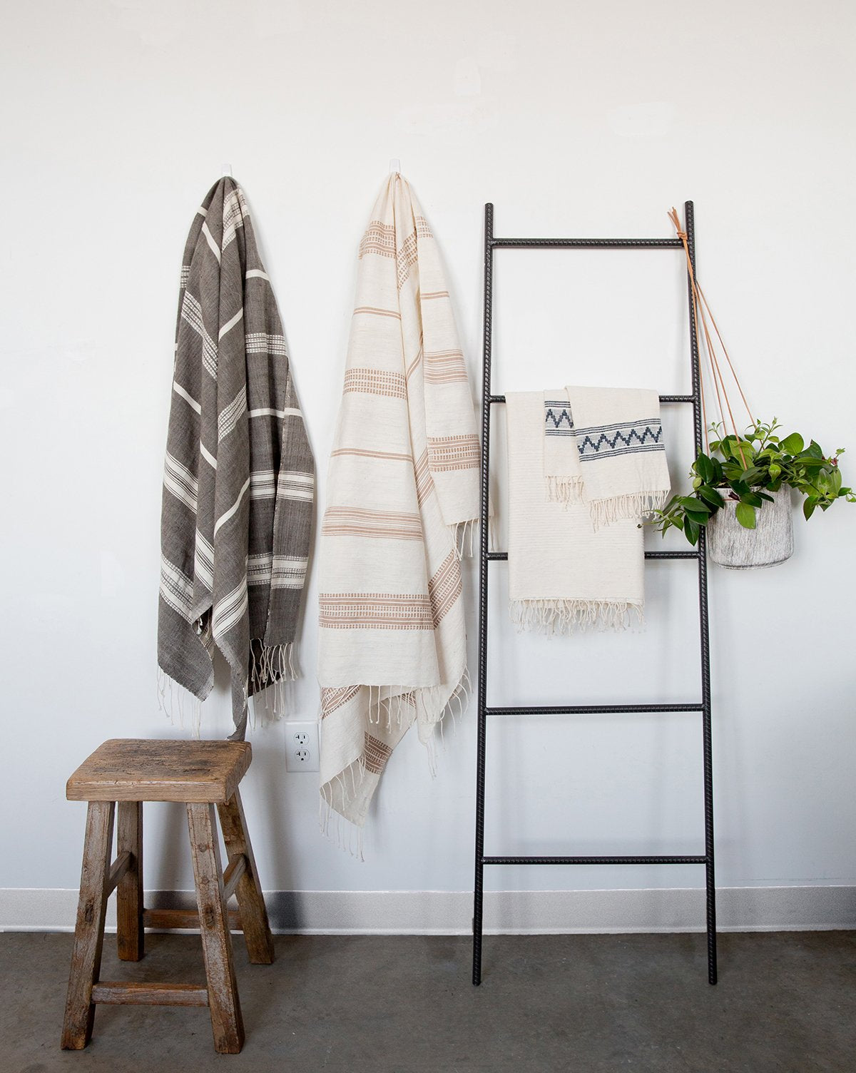 Give your room a feeling of height with the industrial style of our Iron Ladder. Crafted from contraction iron, this ladder has a unique textured pattern within its rungs. Perfect for hanging towels or displaying throws, this ladder draws attention in any space.