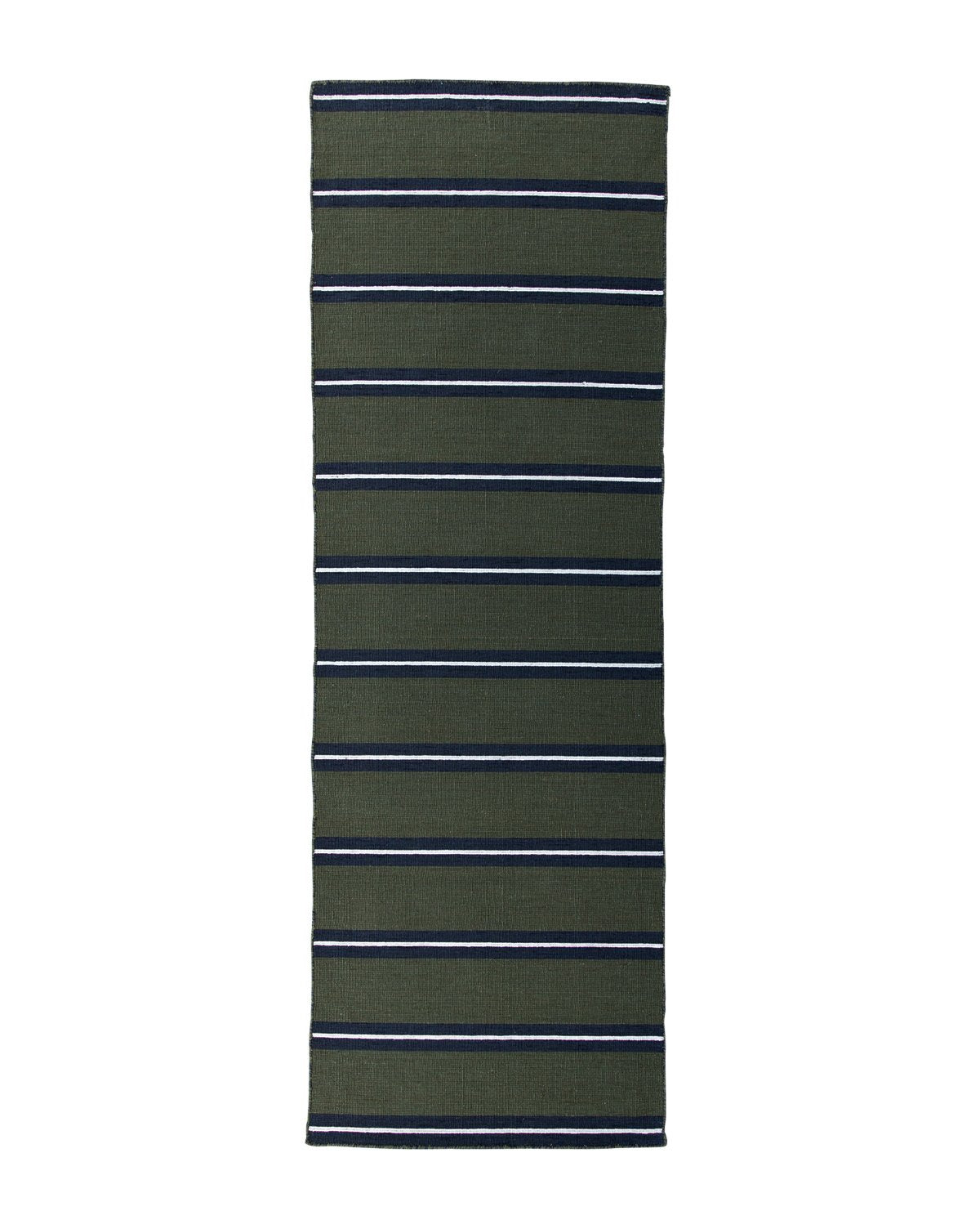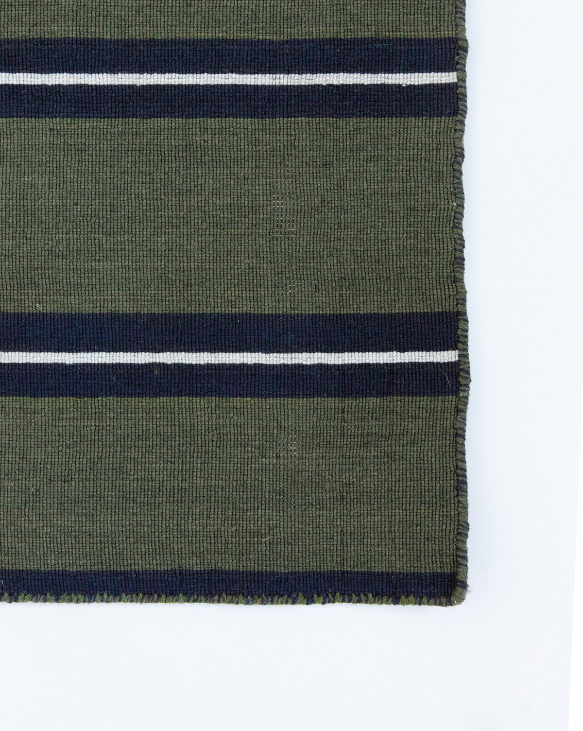 Our Jamestown rug is handwoven in India from recycled materials by skilled artisans. While crafted to withstand the outdoor elements, its cotton feel and look makes it comfortable and pretty enough for indoor spaces too! We designed its deep green stripes to beautifully layer with a doormat or set the tone with outdoor furniture on top.