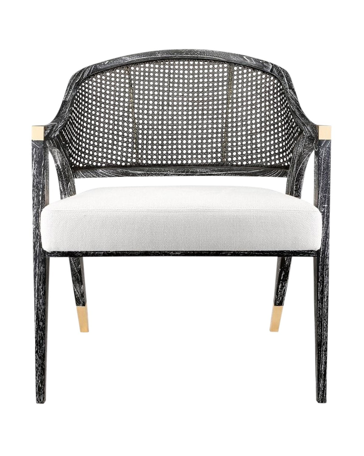 Our Jenson Chair is crafted from a hand-woven rattan back and sustainably-harvested Cape Lilac Mahogany. Elegant and understated hand-cast brass sabots and arm caps finish off this classic design.