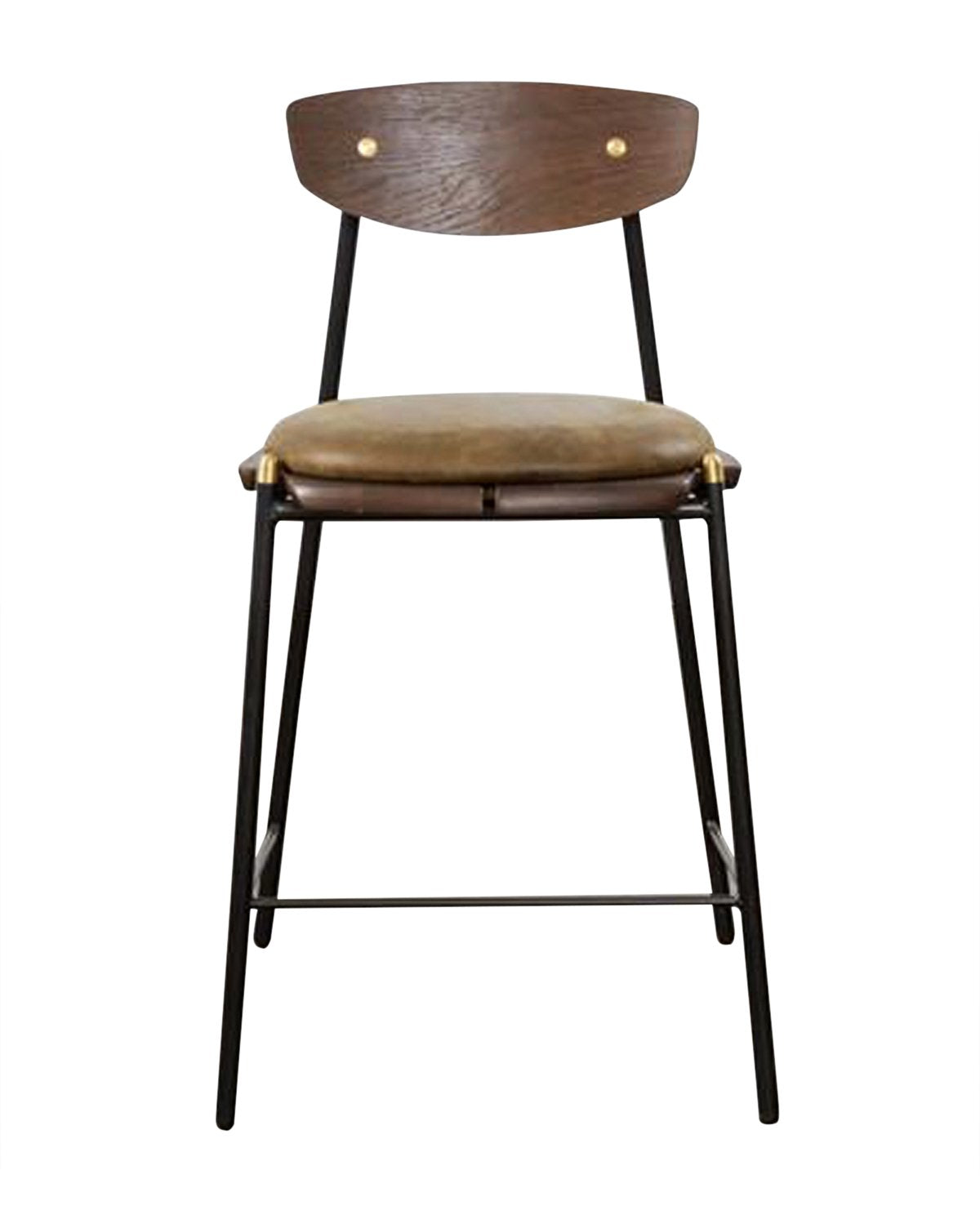 With distinct details, the Jessica Counter Stool offers a new aesthetic to kitchen seating. Made of solid oak, its split seat complements the brass accents of its black steel frame.