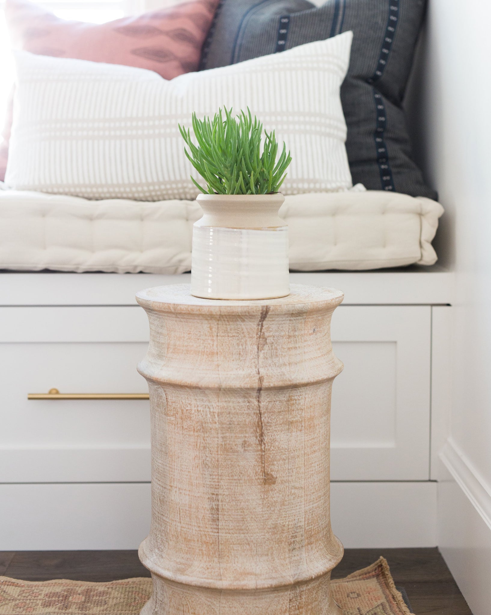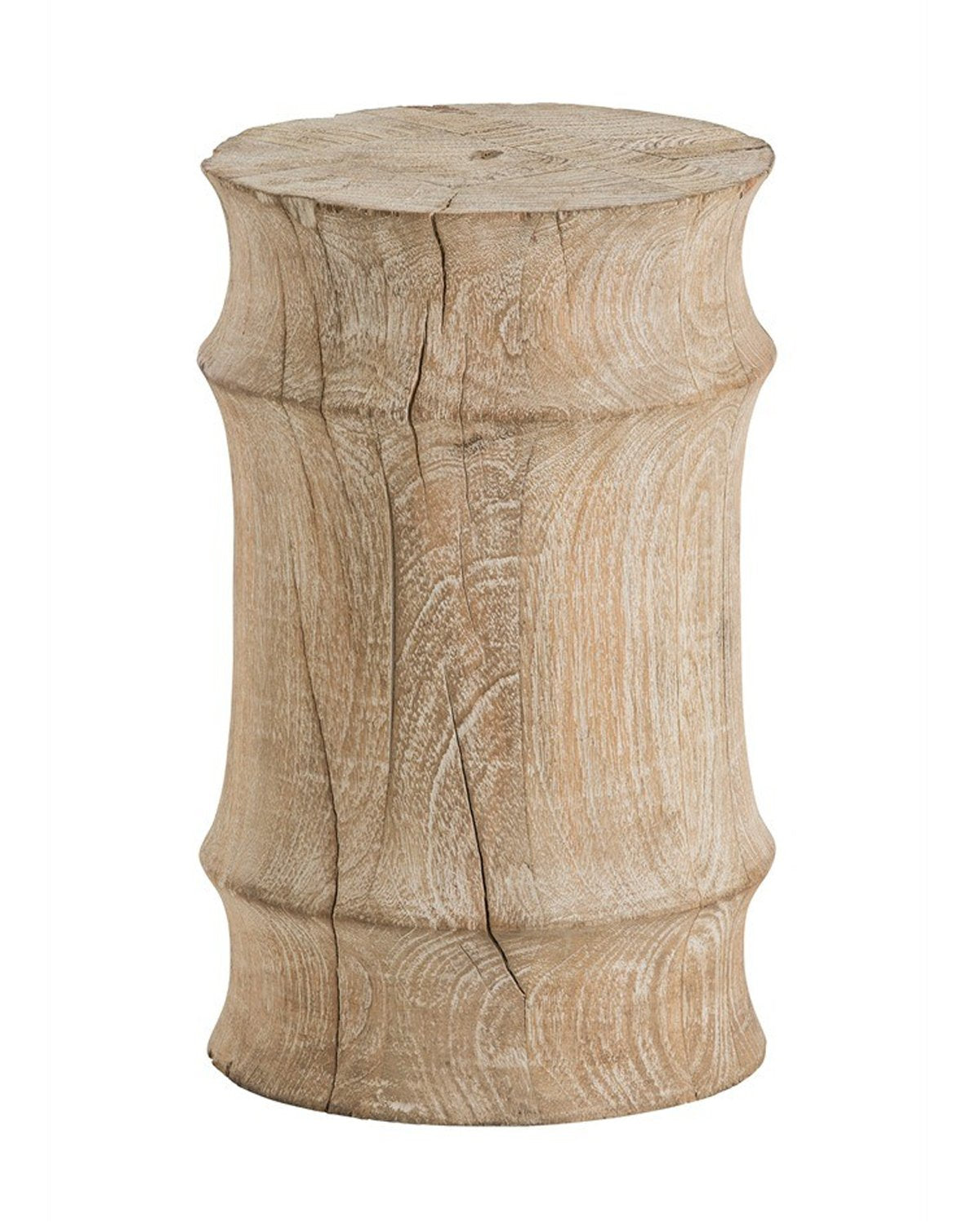 Bring a taste of the outdoors to your home with this wooden accent table. Appreciate the earth authentically with natural cracks in the wood and a simple carved shape.
