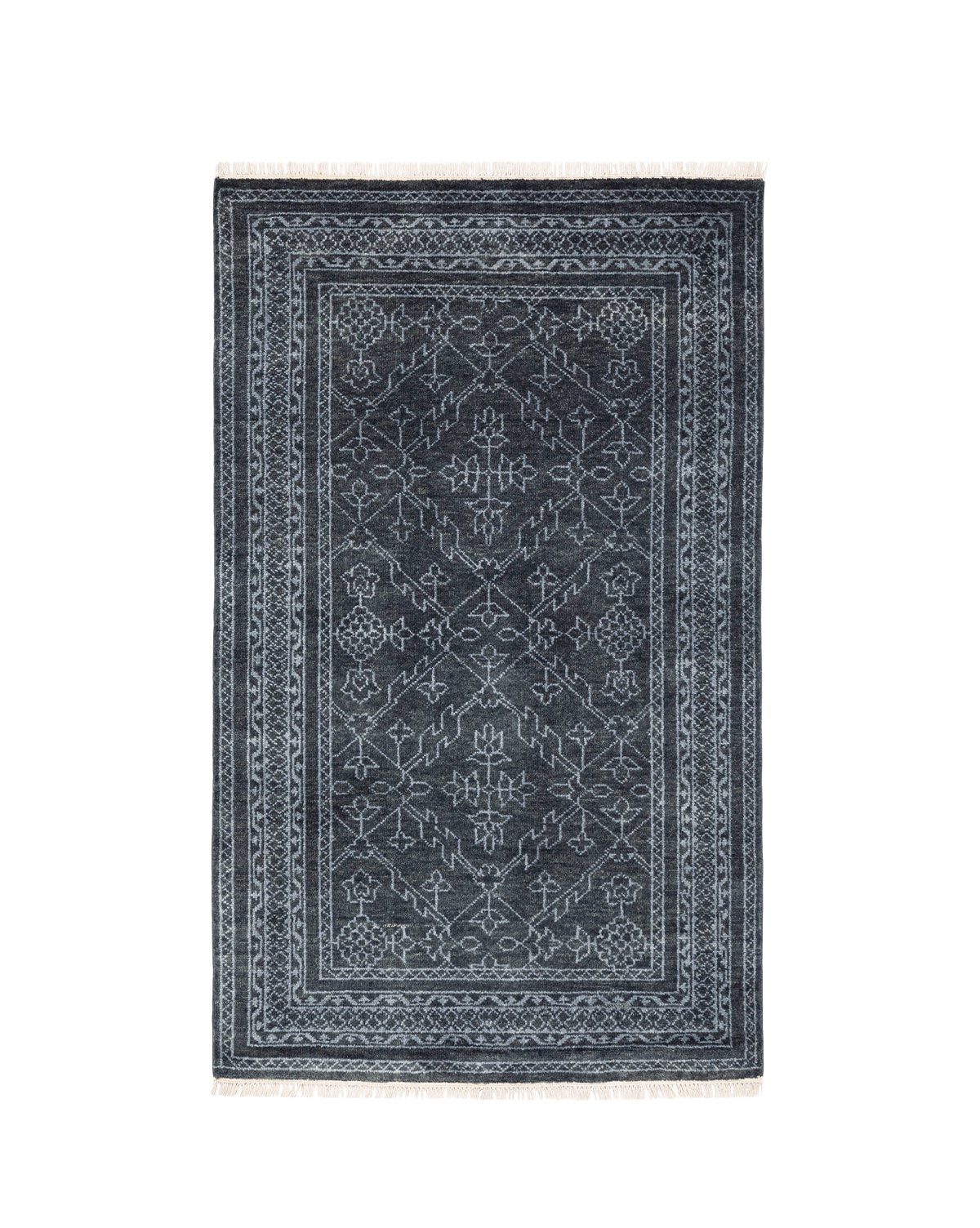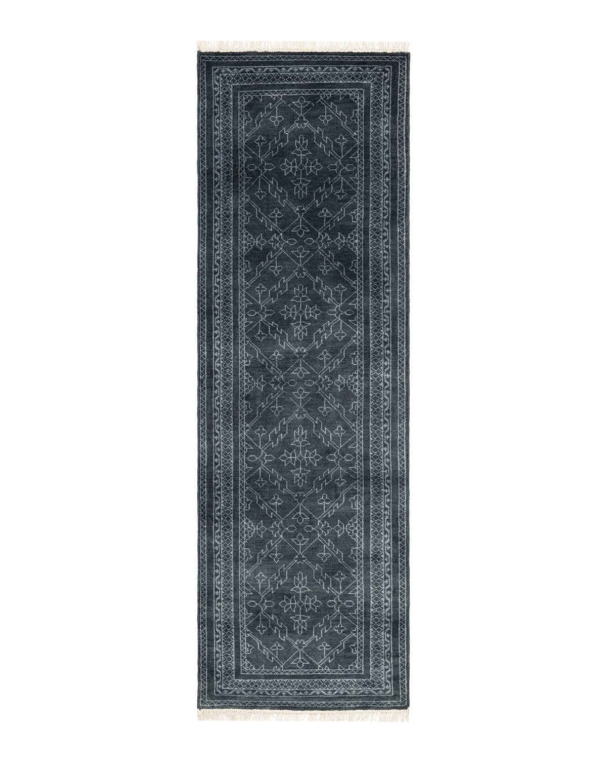 Hand-Knotted with unprecedented attention to detail, the Kazan Rug features a tonal blue palette, with a vintage-inspired motif. Its subtle fringed edge takes the design to a new level, creating the perfect amount of contrast while softening the darker tones. Crafted from 100% high-quality, durable wool, this rug is sure to add style to your home for years to come.