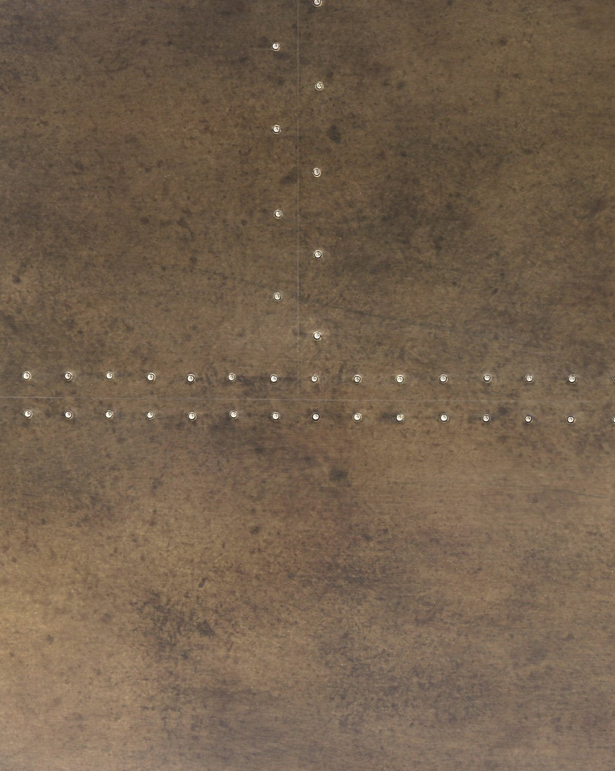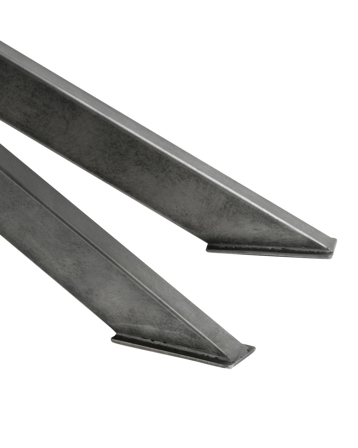 The Lachlan Console Table is rich with architectural interest and material quality. Its woodblock center grounds its dramatically angled black iron supports, while its brass clad top enhances its unique material mix.
