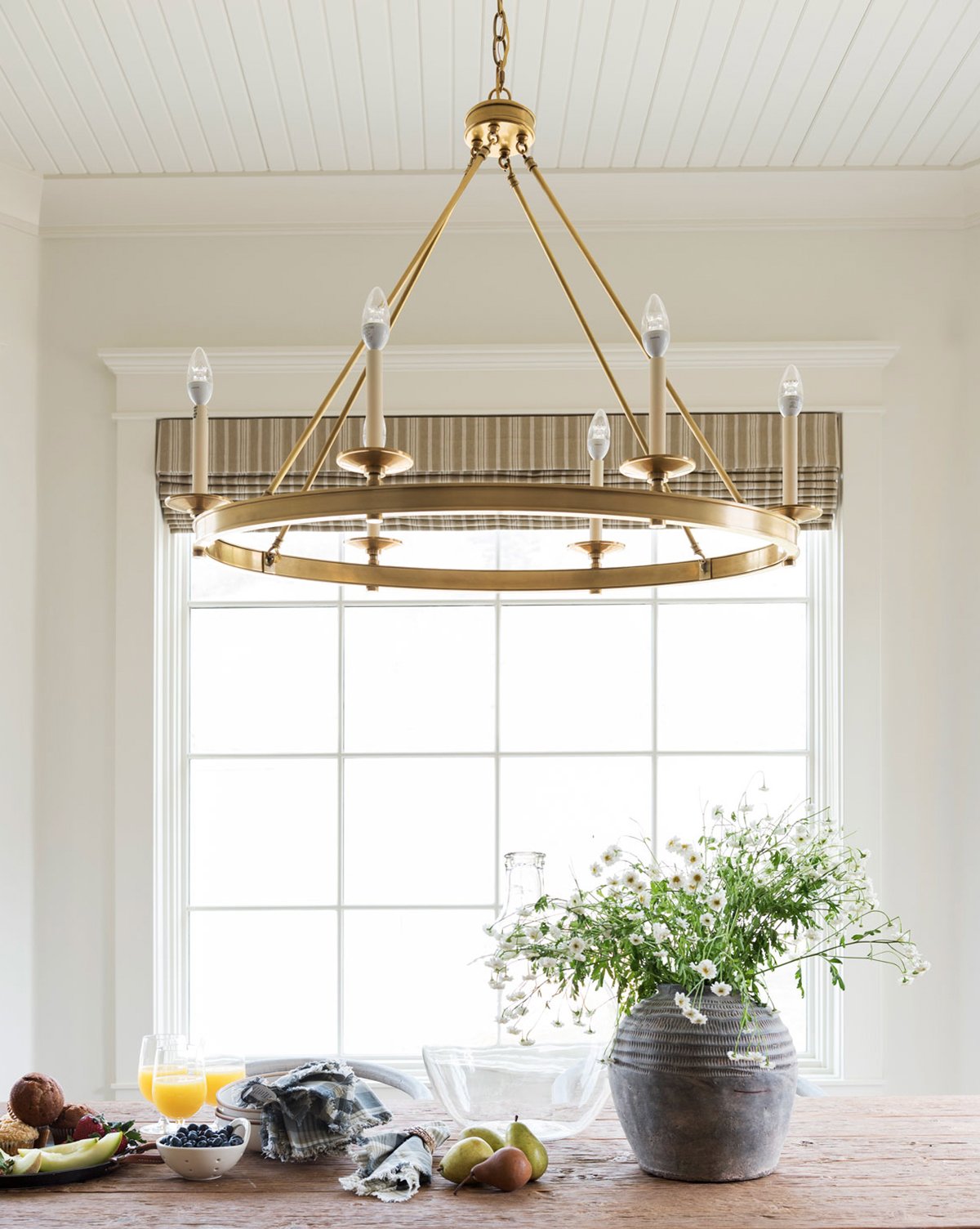 With features that offer balance and simplicity, our Launceton Ring Chandelier has just the right details complementing its traditional design. A large circular base and six uniformly spaced candelabras ensure the light is able to be distributed evenly throughout the entire room.