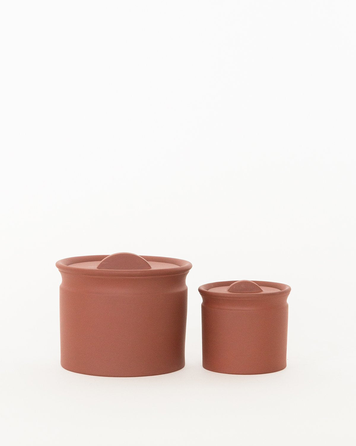 Based on the design of traditional French ironstone preserving jars, the Livorna Canister features straight formed sides and an elegant concave lip. Its deep terracotta hue lends depth and character to your kitchen space while functionally storing everything from flour to pasta noodles.