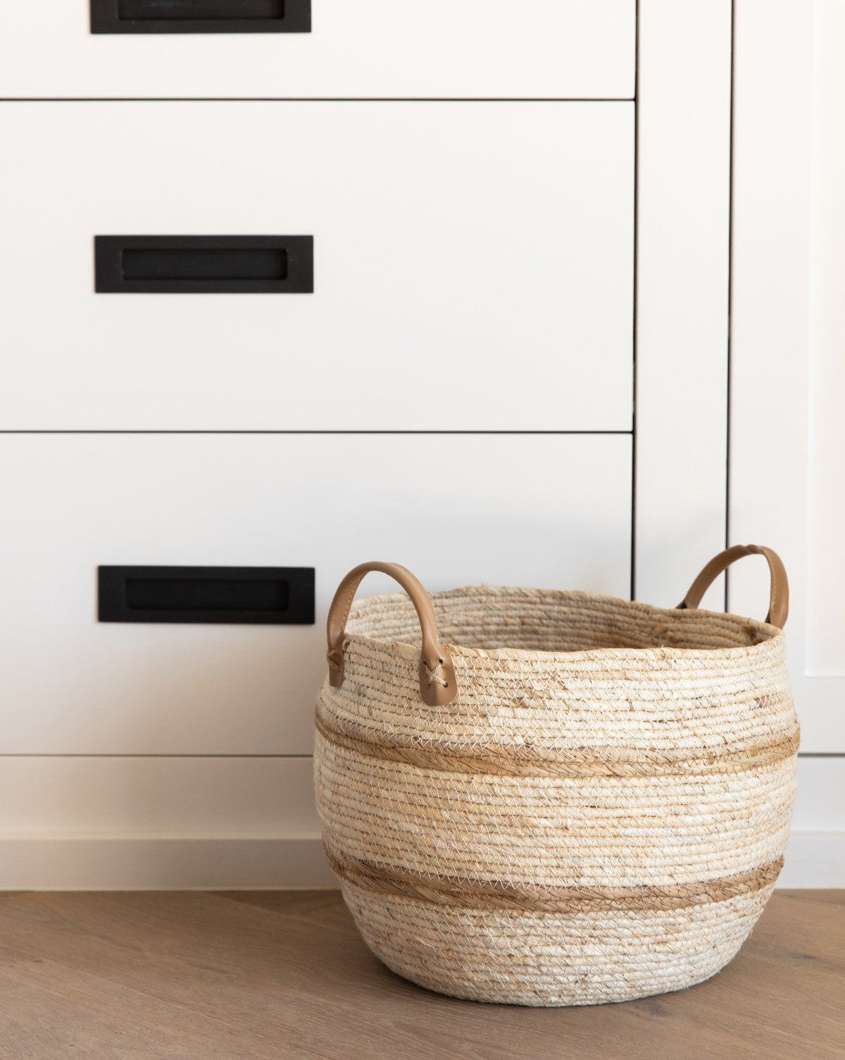 With neutral coloring and a classic two-stripe, our Maize Basket adds dimension whether styled with a potted plant or simply storing blankets in a corner. It’s so versatile you’ll want one of these baskets in every room!
