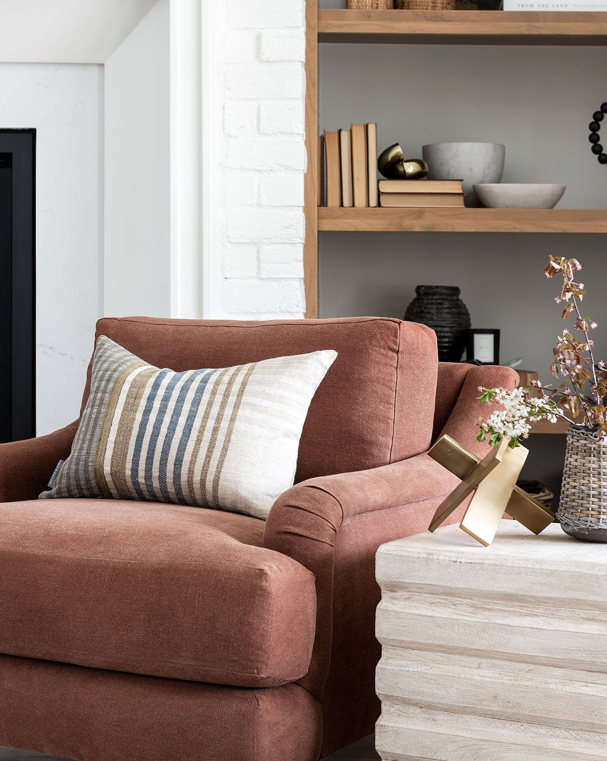 Handwoven from 100% natural materials, our Margaret Pillow Cover features a unique array of stripes. From creams to dark browns and even some blues, this textile blends seamlessly with existing design while adding unique dimension.