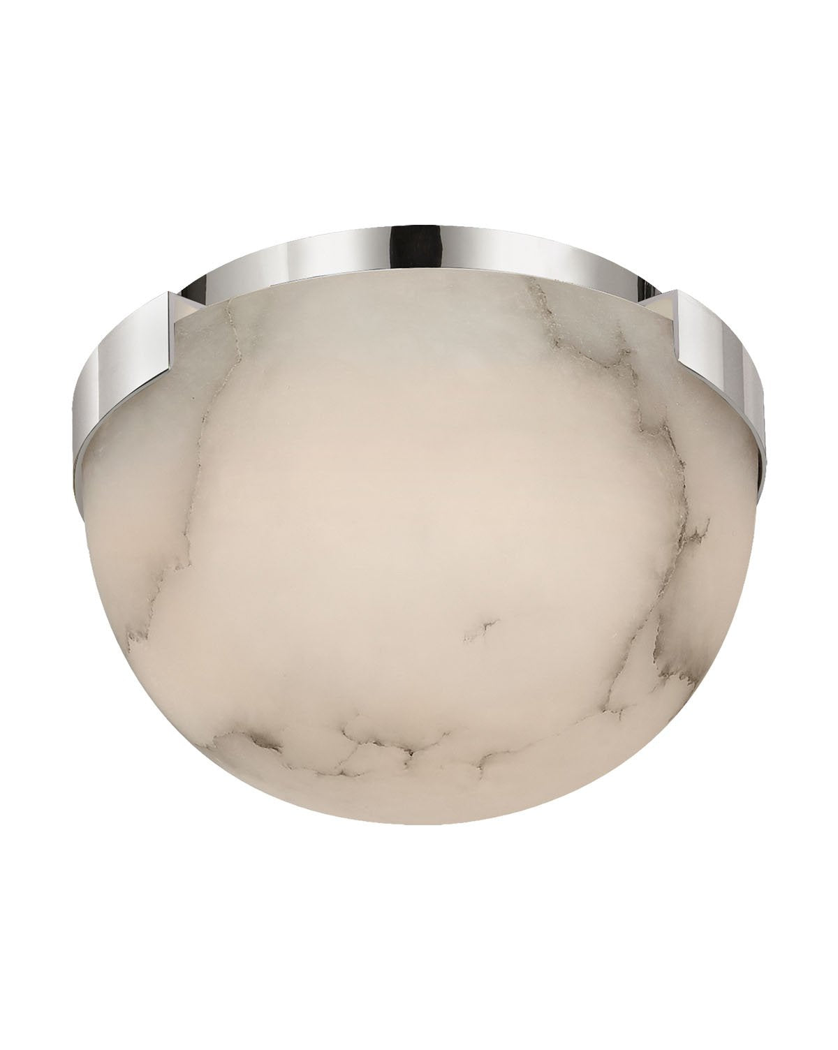 Modern and elegant, our Melange Flush Mount features a pure alabaster shade. Its circular beveled base is offered in three sleek finishes, each bringing a different feel to the design.