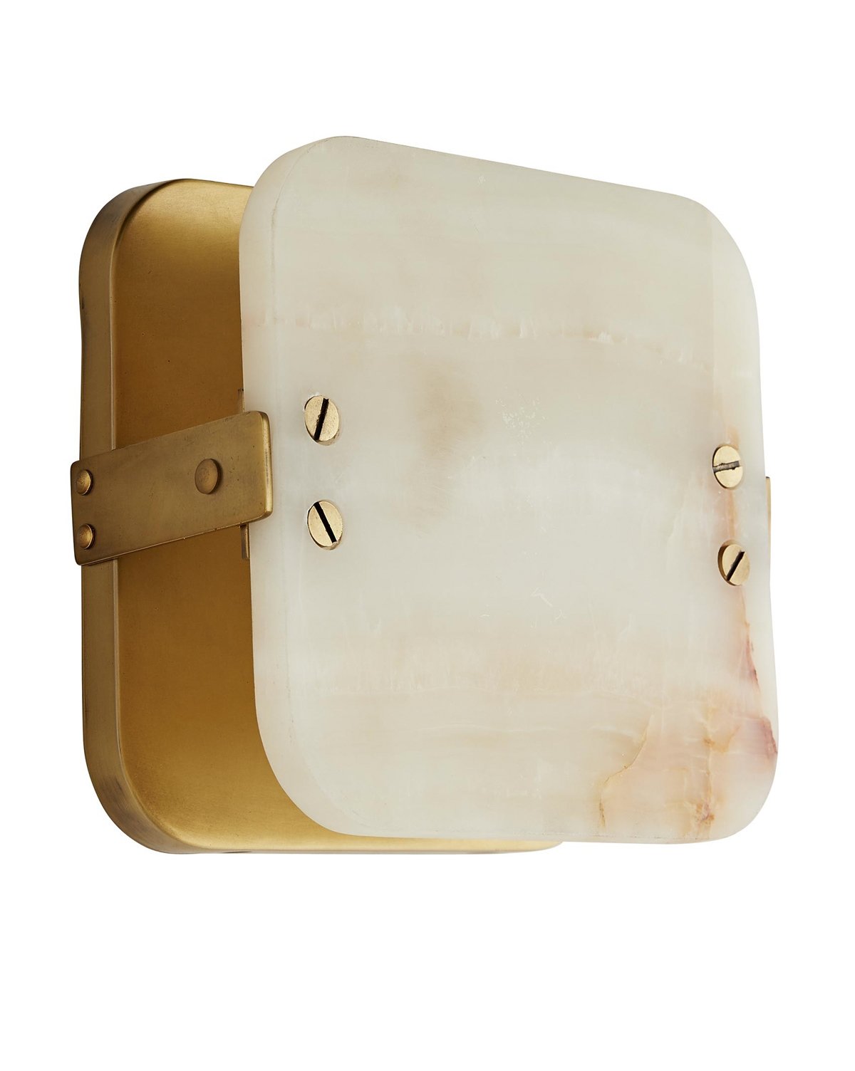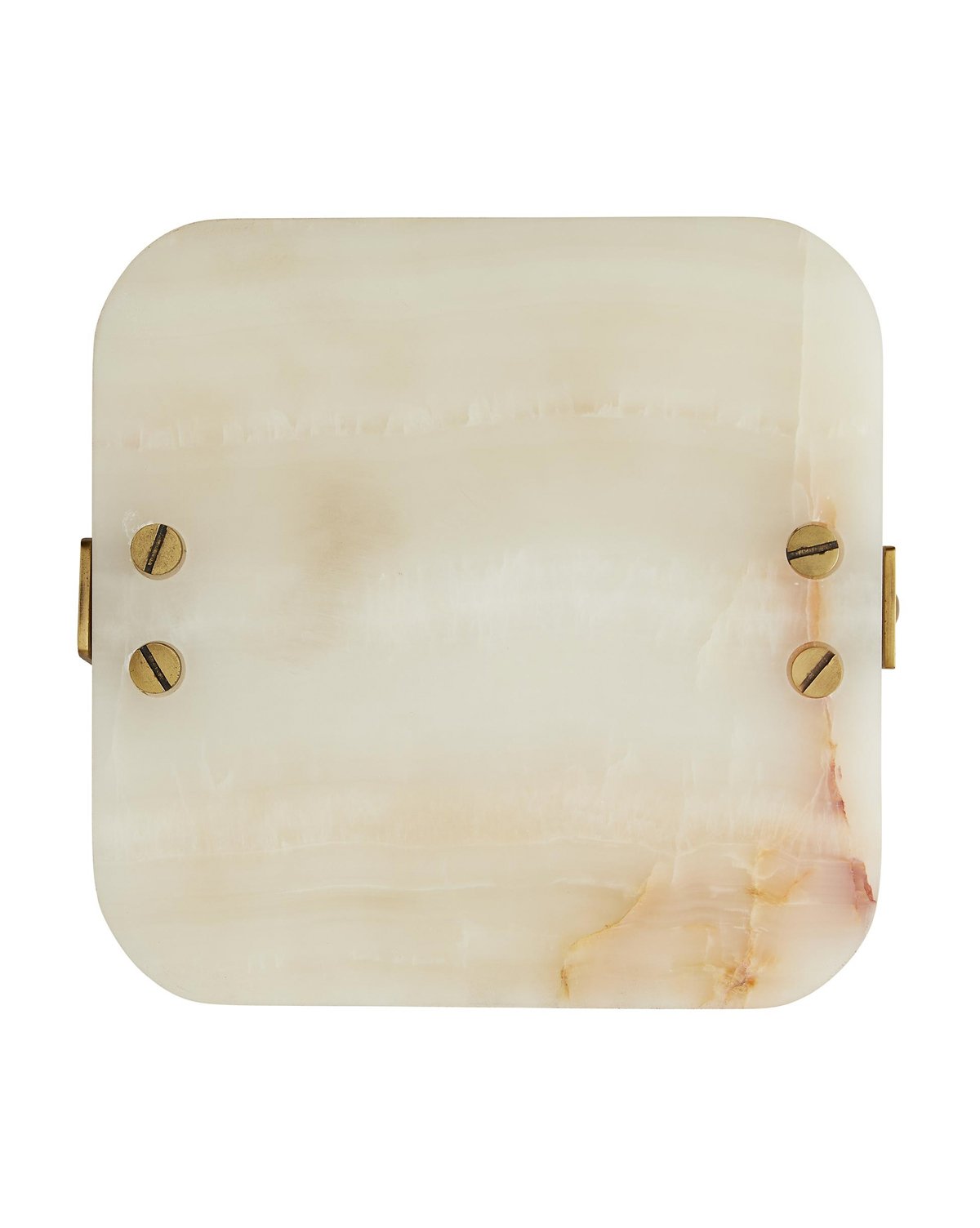 While ultra modern in design, the Mercury Sconce adds another level of sophistication with its functional design. With pivots that allow for lighting customization, it’s perfect for getting light into all the right spaces. Muted variations of color create dimension on its white onyx plate, as antique brass details give this fixture a contemporary edge.