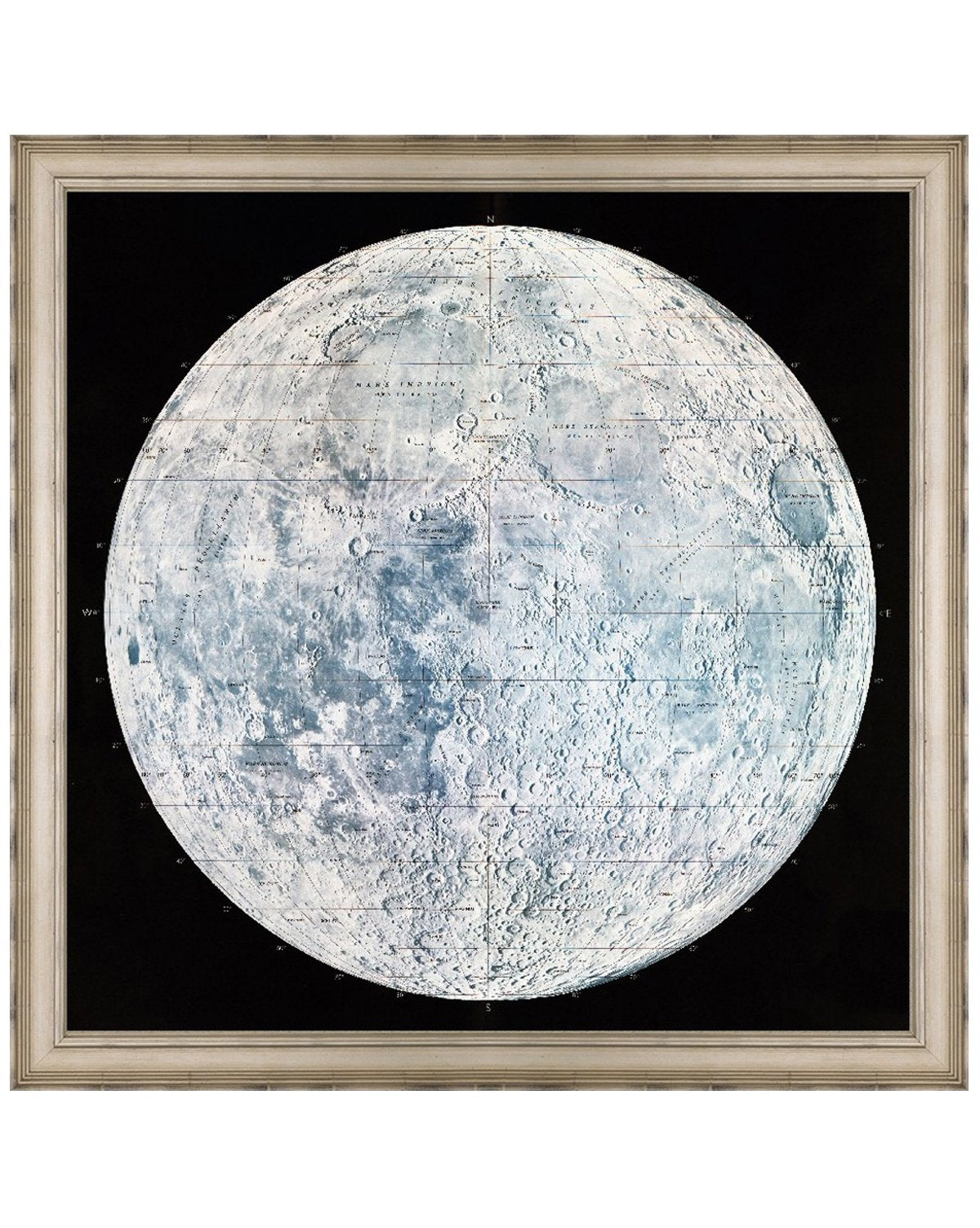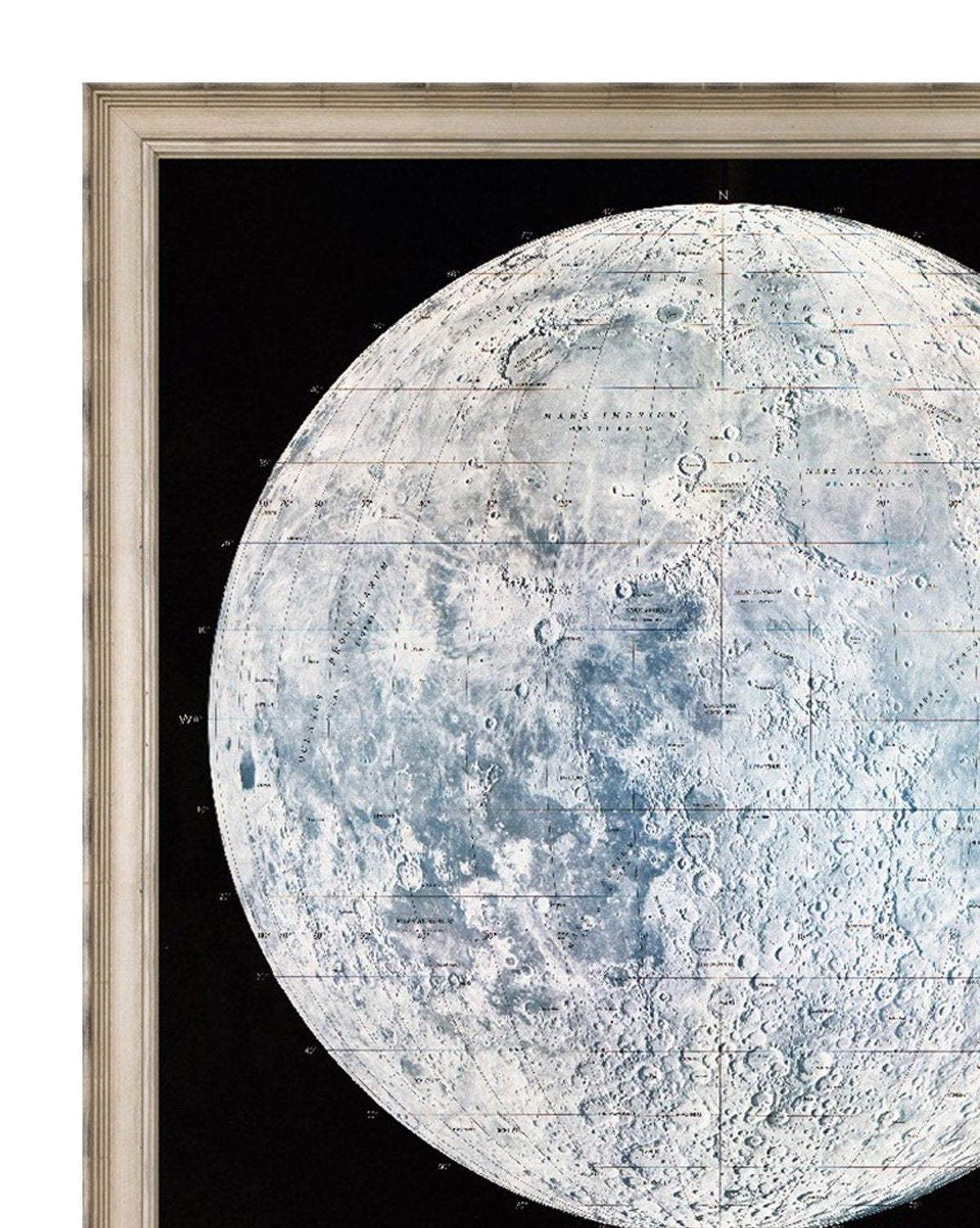 Our Moon Map is an intriguing piece full of detail and depth. Stylistic and educational, this piece is sure to be a conversation starter styled in any study or kids room.